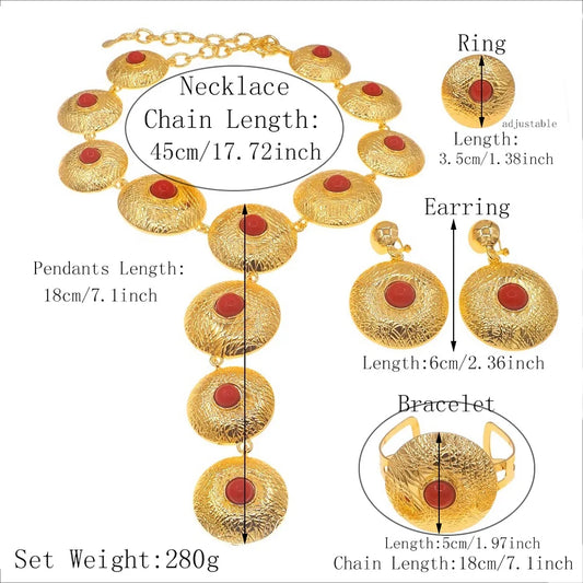 Jewelry Set For Women 24K Plating Necklace Big Round Pendant Luxury Earrings Bracelet Wedding Banquet Bijoux SYHOL