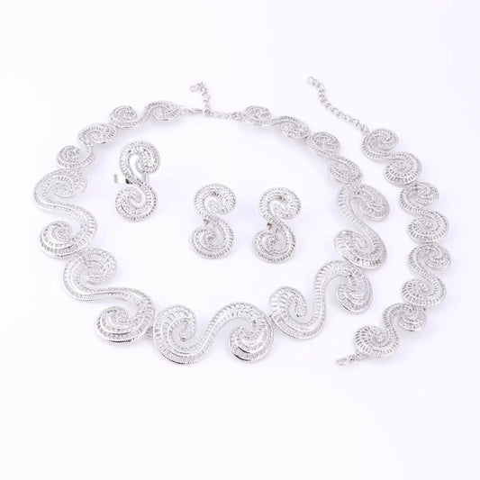 African Jewellery Sets Silver Color Hollow Out Necklace Bracelet Ring Earrings Sets Classic Bridal Jewelry Sets