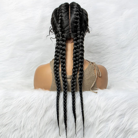36" Synthetic Knotless Box Braided Wigs For Black Women Cornrow Braids Lace Wigs Full Lace Braids Hair Wig Black Braiding Hair
