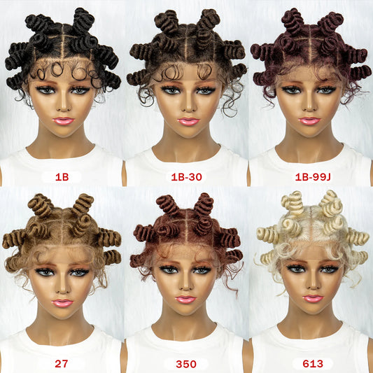 Knotless Braids Wig Synthetic Box Braided Hair Twist Braided Buns Wig Full Lace African Braiding Hair For Black Women