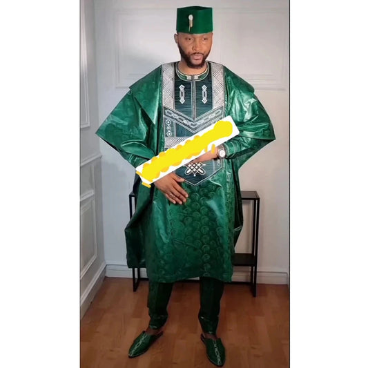 H&D South African Traditional Wear Formal Attire Bazin Riche Dashiki Outfits Green Shirt Pants Robe Suit Agbada Ramadan 2024