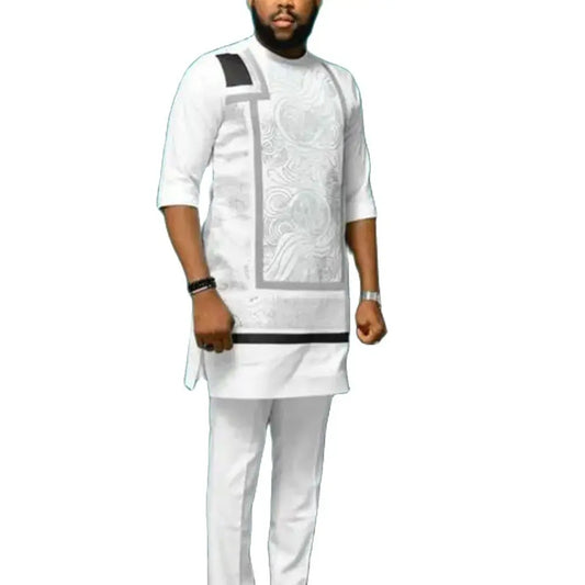 African Clothing For Men Traditional Embroidery Design Top Long Sleeve 3 Piece Set
