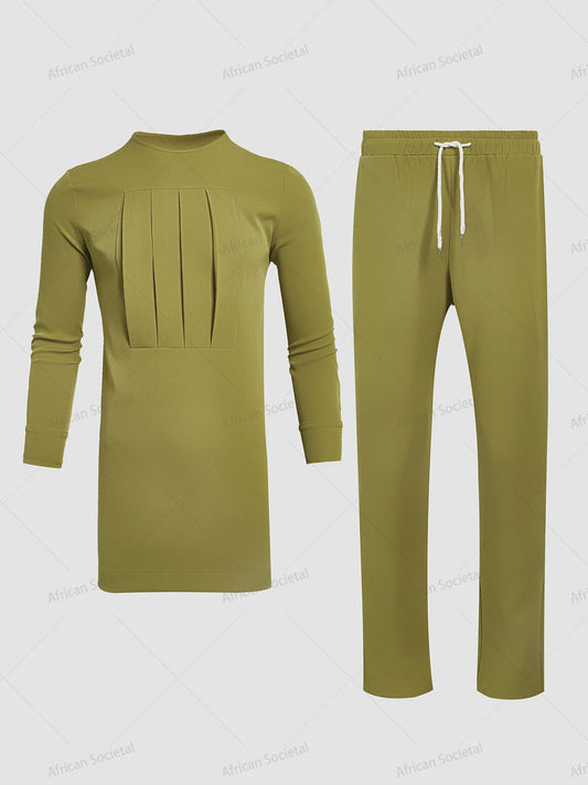 African Clothes for Men Summer Fashion 2024 African Men Long Sleeve O-neck Polyester Top Long Pant Matching Sets Africa Clothing