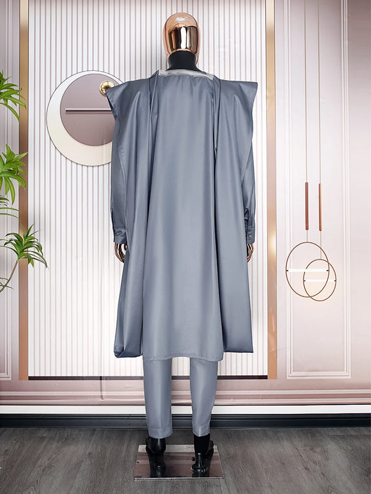 H&D South African Traditional Wear Formal Attire Bazin Riche Dashiki Gray Shirt Pants Robe Suit Agbada Men's wedding party 2024