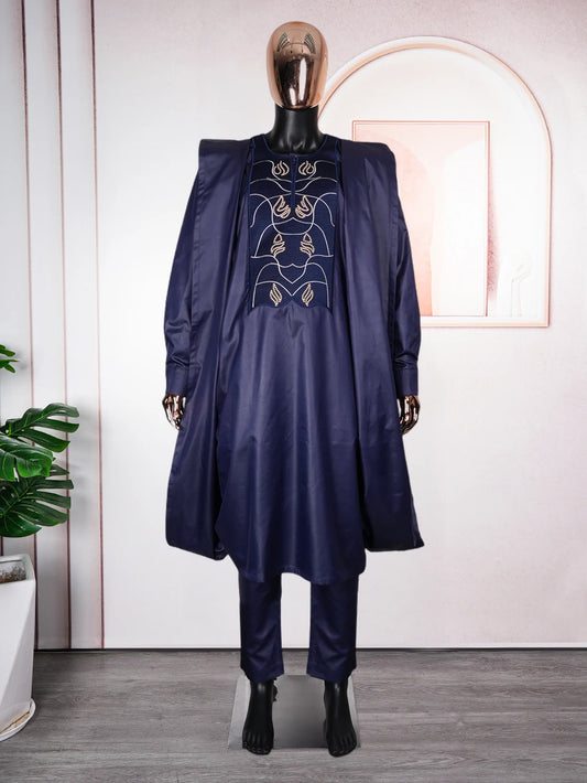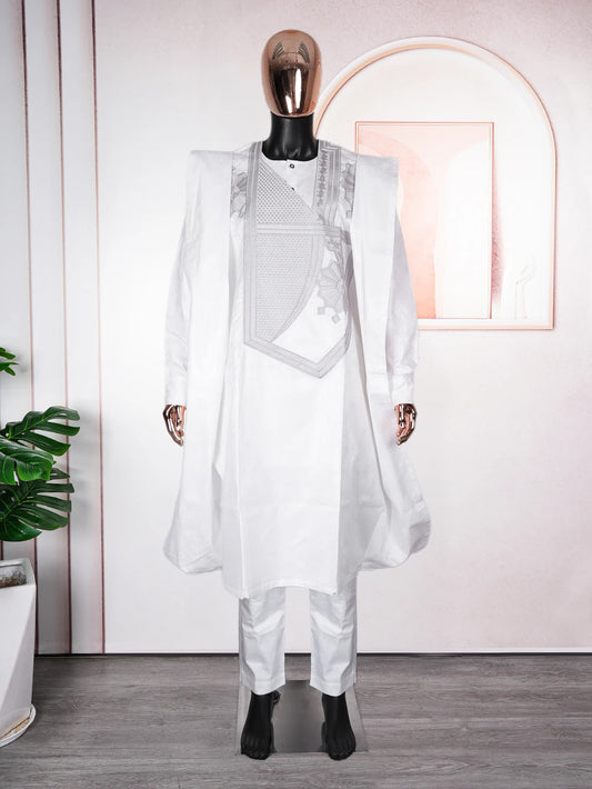 H&D African Clothes for Men Bazan Trads Wears Robe Shirt Pants 3 PCS Set Embroidery High -quality embroidery wedding dress