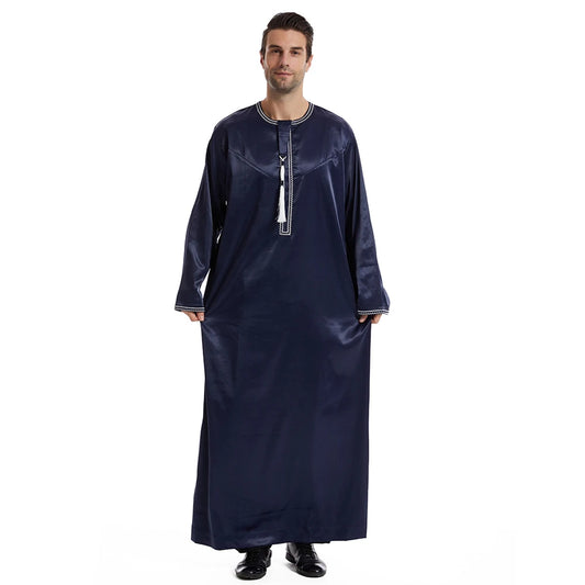 New Men's Muslim Fashion Abayas Dress O Neck Long Sleeve Pullover Kaftan Pakistan Saudi Arab Caftan Islamic Clothing Prayer Robe