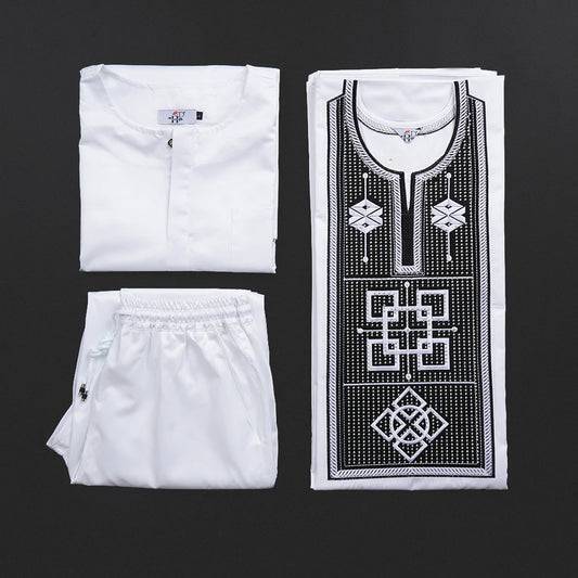 African Clothes Embroidery Bazin Riche Bubu Gown For Men Church Party Wedding Thobe 3 PC Top and Pants White Suit Set Daily Wear