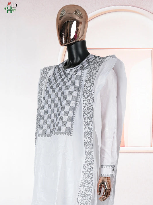 H&D New In African Summer Men's Long Sleeve Suit White Embroidery Dashiki Shirt Pants Sets 3 Pieces Outfits Wedding Party 2025