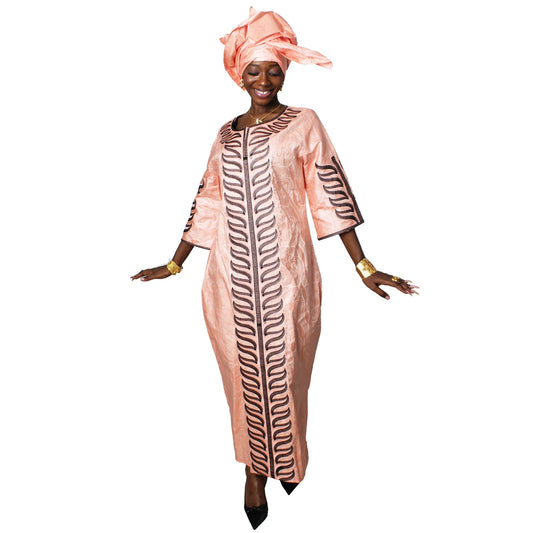 African Dress For Woman Plus Size Dress Bazin Riche Embroidery With Embroidery Floor Long Dress With Scarf