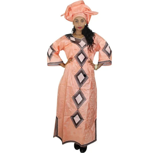African Dresses For Women Fashion Design New African Bazin Embroidery Design Dress Long Dress With Scarf