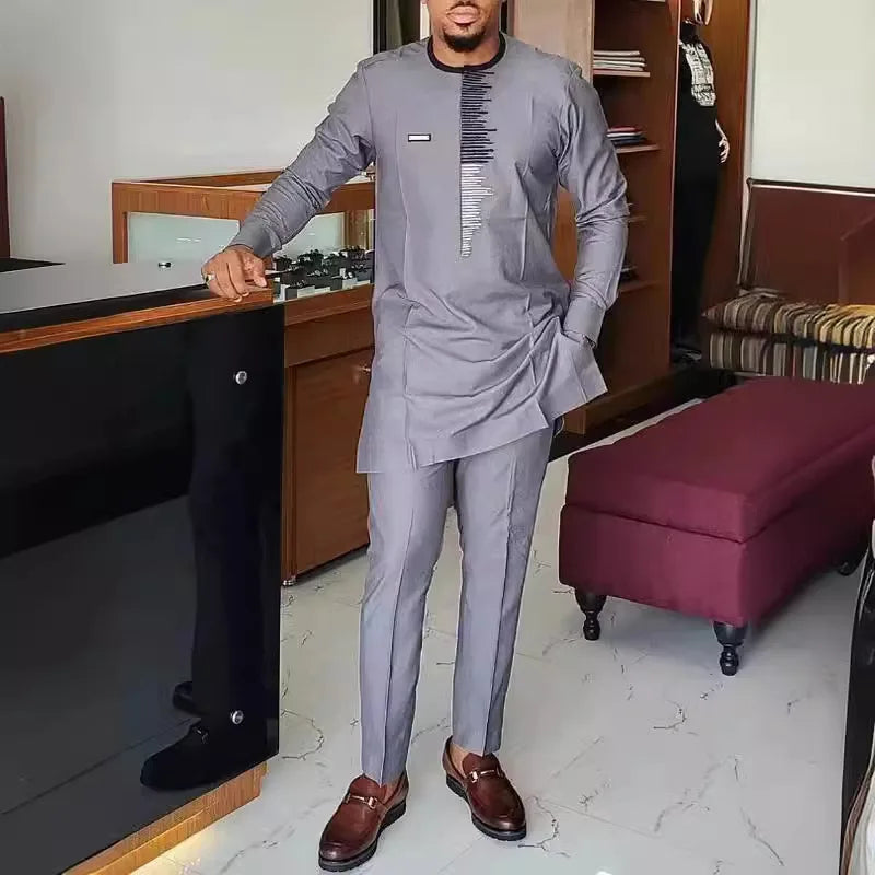 2 Piece African Clothes for Men Spring Fashion African Long Sleeve Top Long Pant Matching Sets Outfits Dashiki African Clothing
