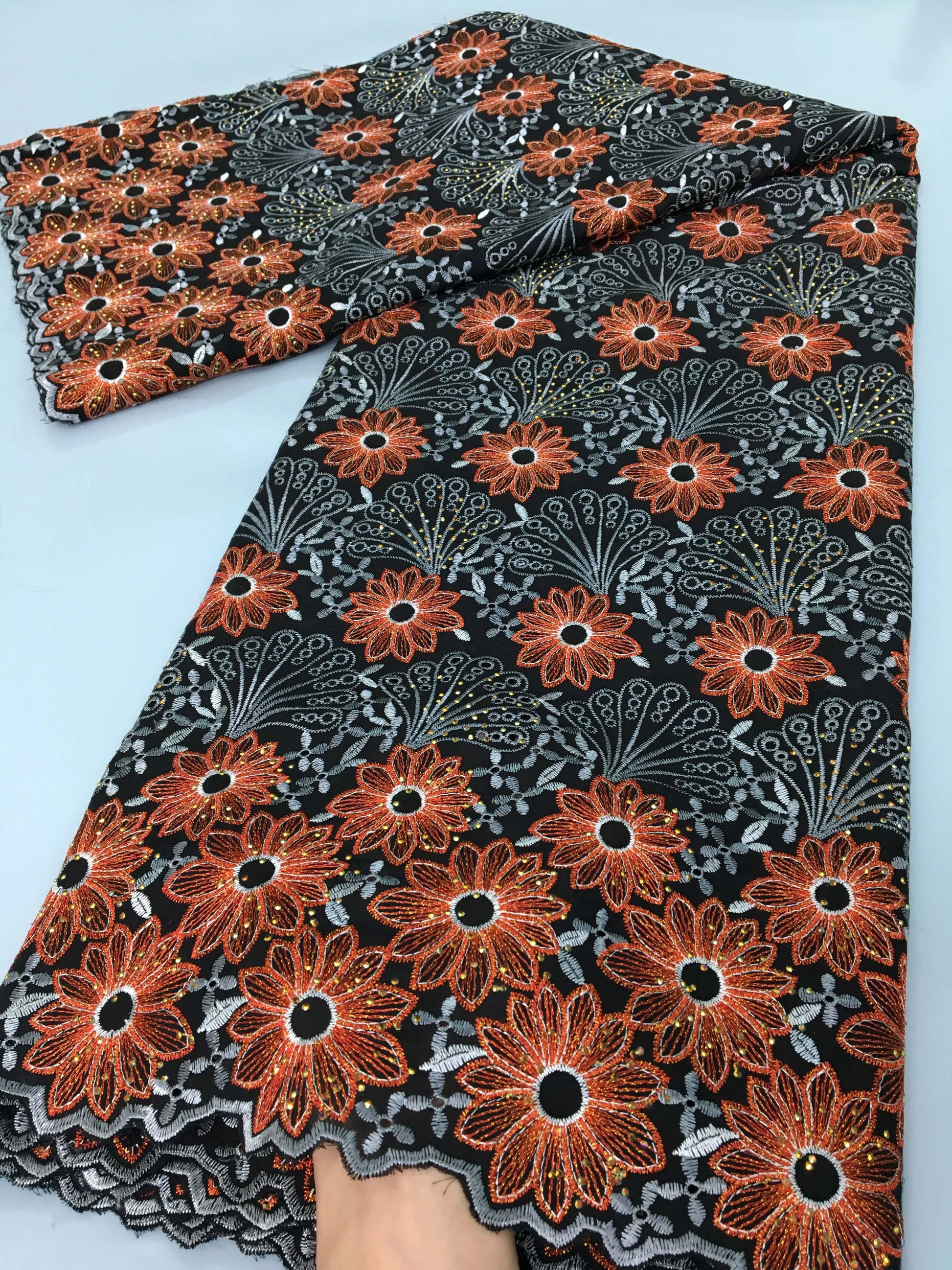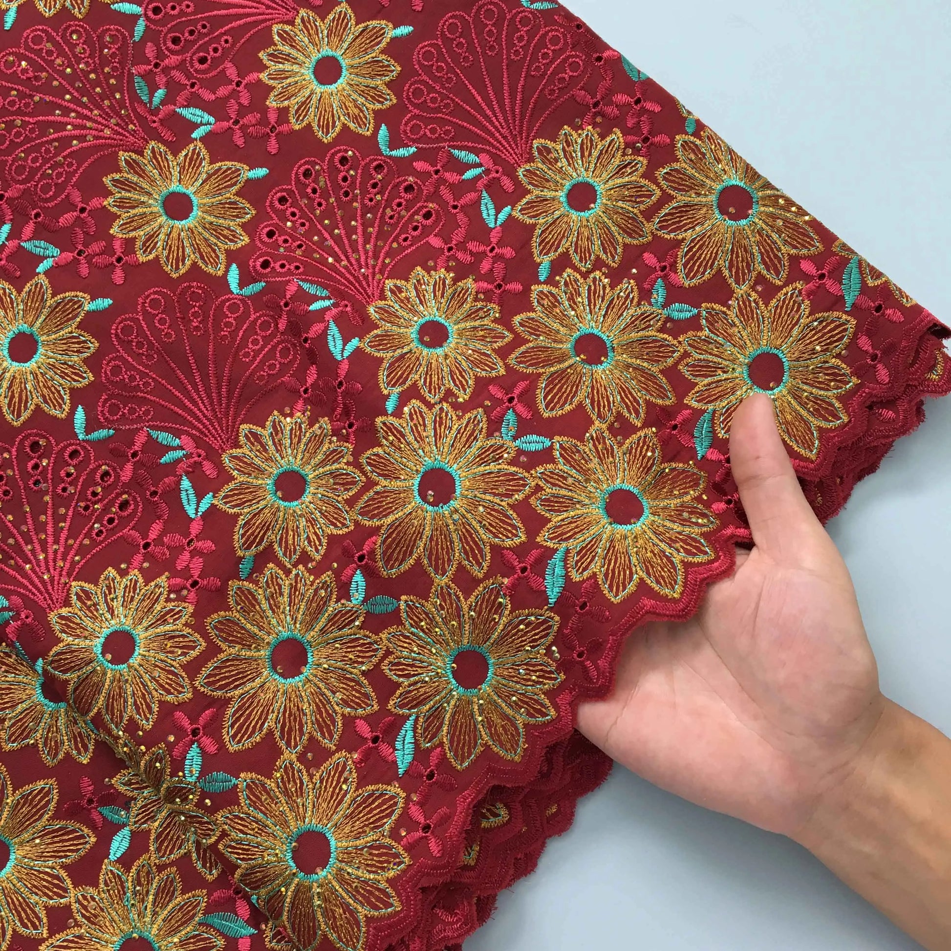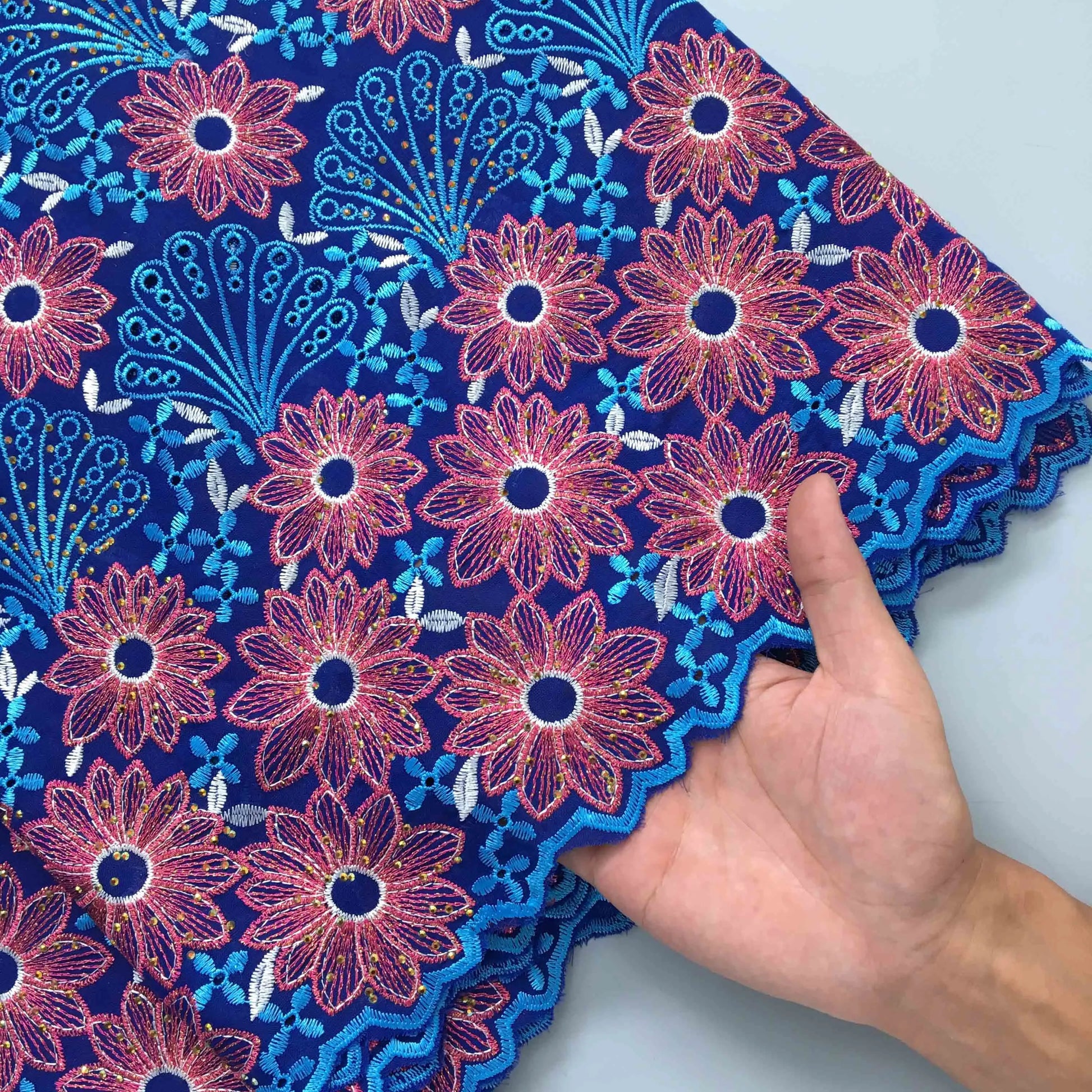 2024 African Cotton Lace Fabric High Quality Nigerian Stones Cotton Lace Fabric Swiss Voile Lace For Women Wedding Dress TY3806