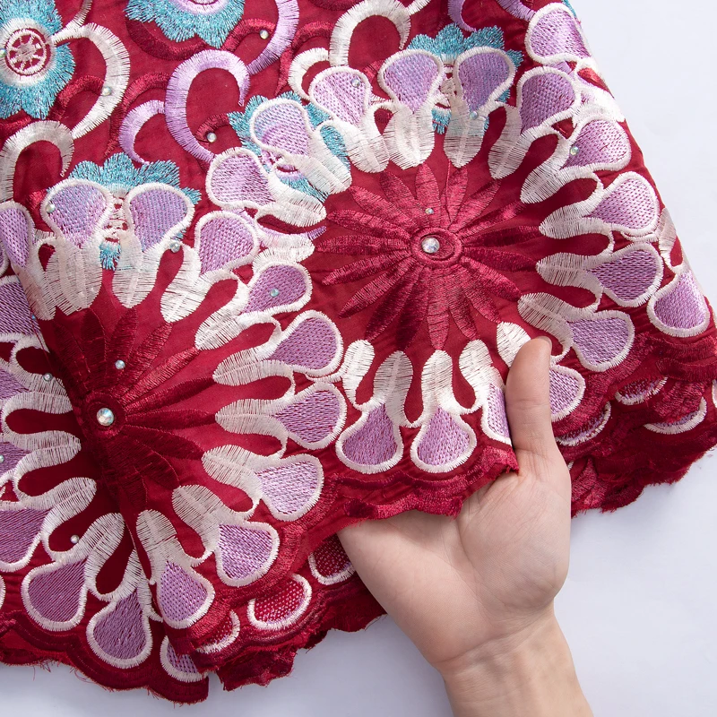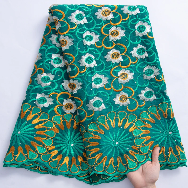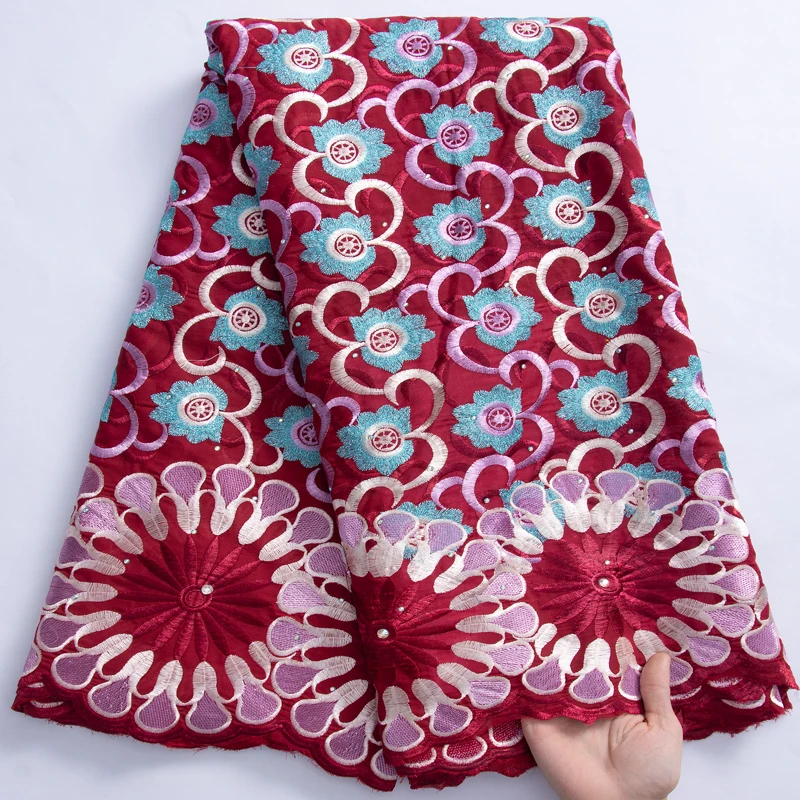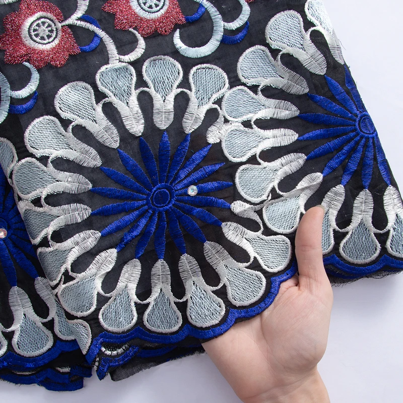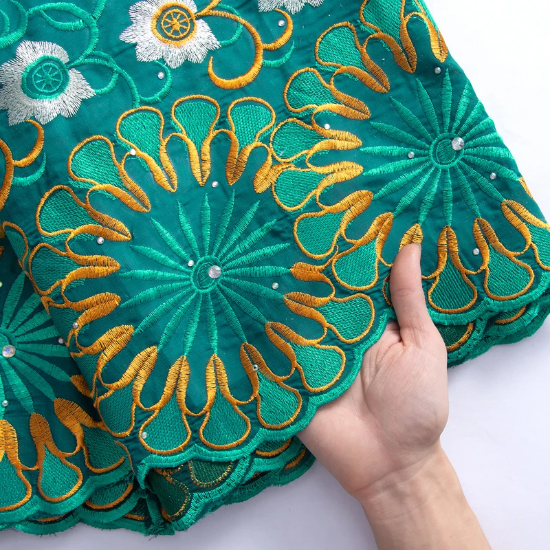 2025 High Quality Cotton Swiss Voile Lace with Crystal African Embroidered Lace Fabric for Sew Wedding Party Women Dress TY3052