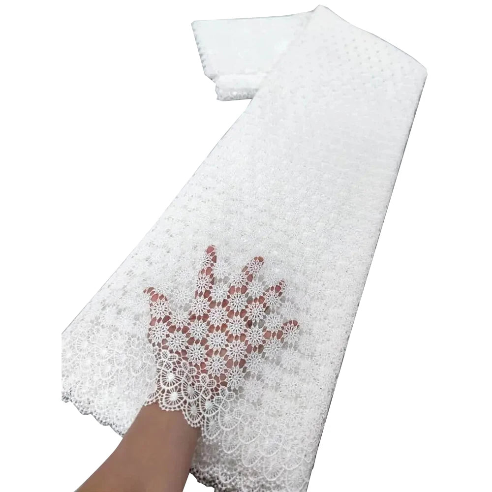 2025 Latest High Quality African Nigerian Water soluble Damask Lace Fabric Embroidery Party Dress Sequins Cotton 5yards