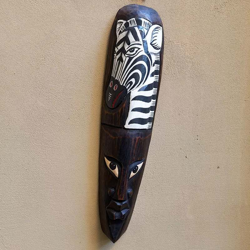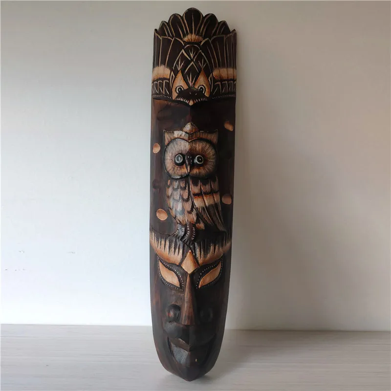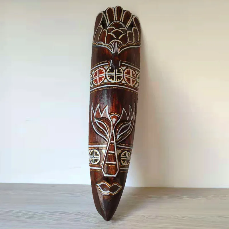 50cm H African Style Wall Hanging Pendant Thai Wood Carving African Face Mask Creative Retro Home Bar Hotel Decoration