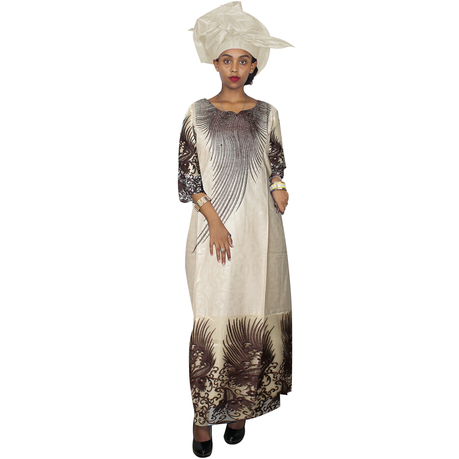 African Attire For Women Bazin Riche Embroidery Plus Size Elegant Party Church Dress