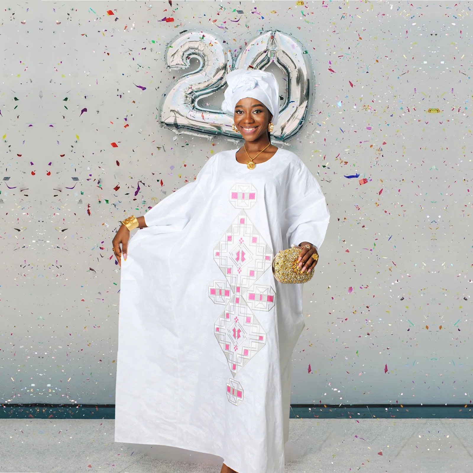 African Attire For Women Bazin Riche Embroidery Plus Size Elegant Party Church Dress