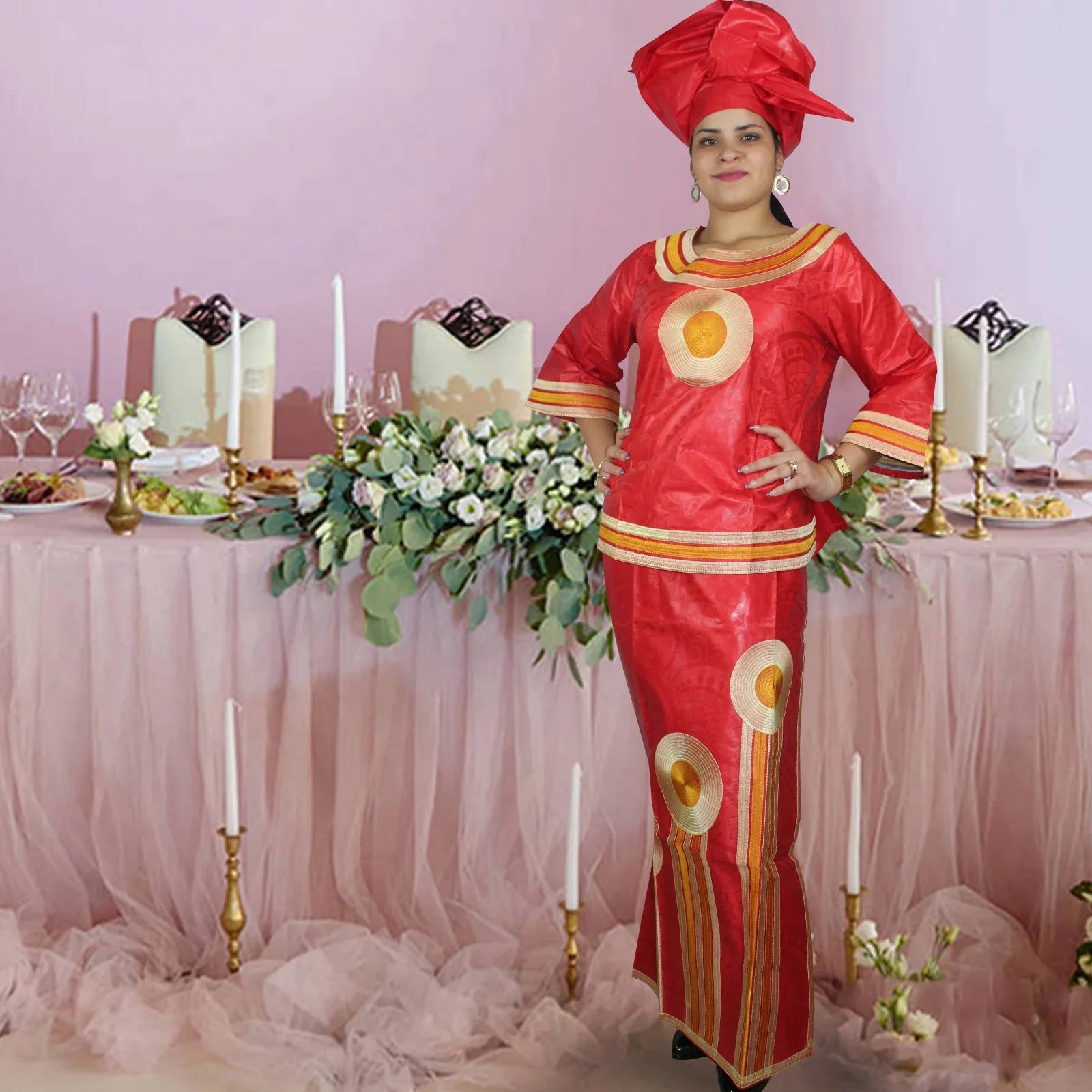 African Attire For Women Bazin Riche Embroidery Plus Size Elegant Party Church Dress