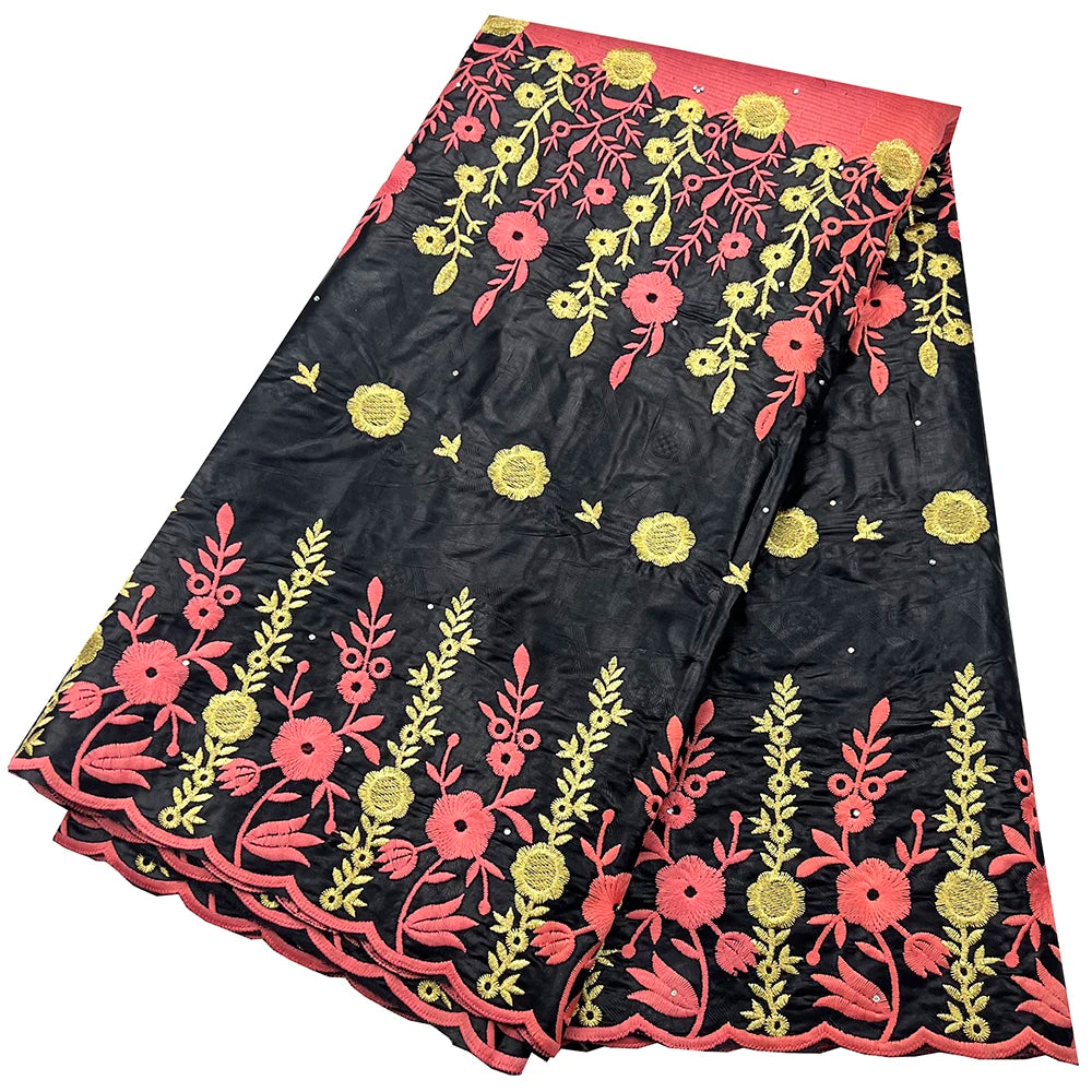 African Bazin Riche Fabric for Dress, African Lace Fabric, Nigerian Embroidery, 100% Cotton, 2.5Yards, F05, Latest