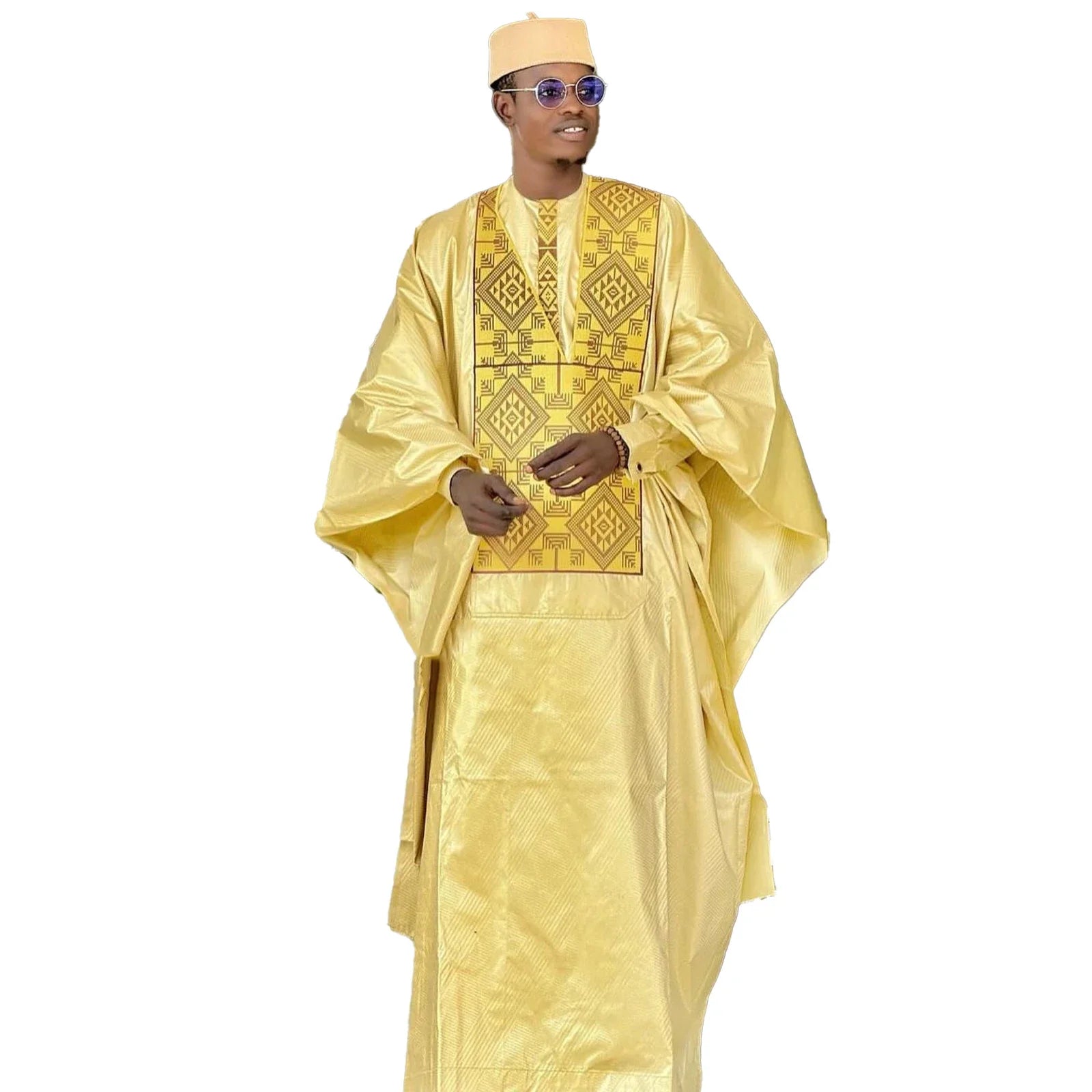 African Clothes For Man Bazin Riche Embroidery Design Top Long Sleeve 3 Piece Set