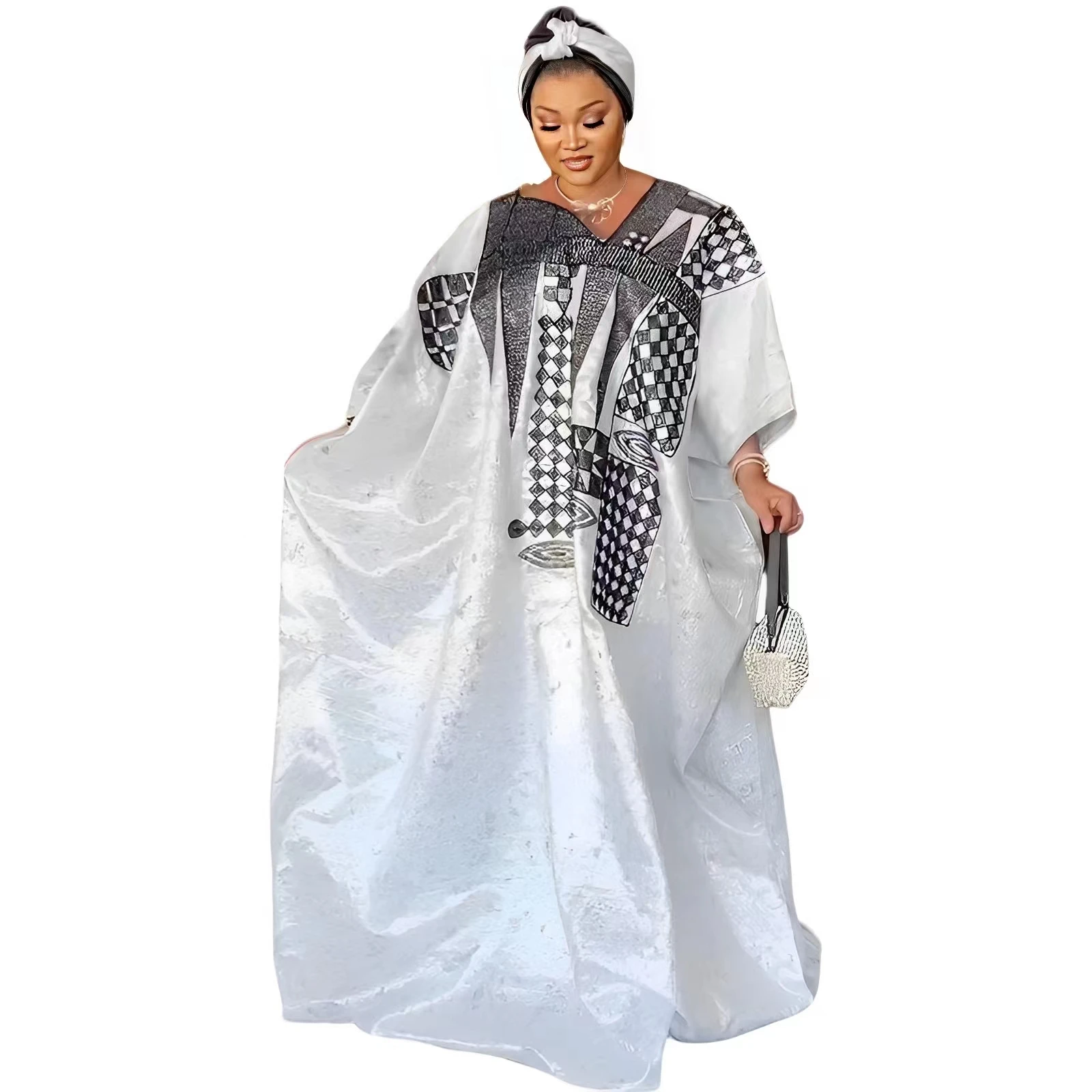 Experience the beauty and elegance of traditional African fashion with our African Dress For Women Plus Size Bazin Riche Embroidery Floor Long Dress. Made with high-quality, breathable materials of cotton, polyester, and rayon. Perfect for any special occasion, this dress will make you feel confident and stylish. Comes with a matching scarf for a complete and stunning look.