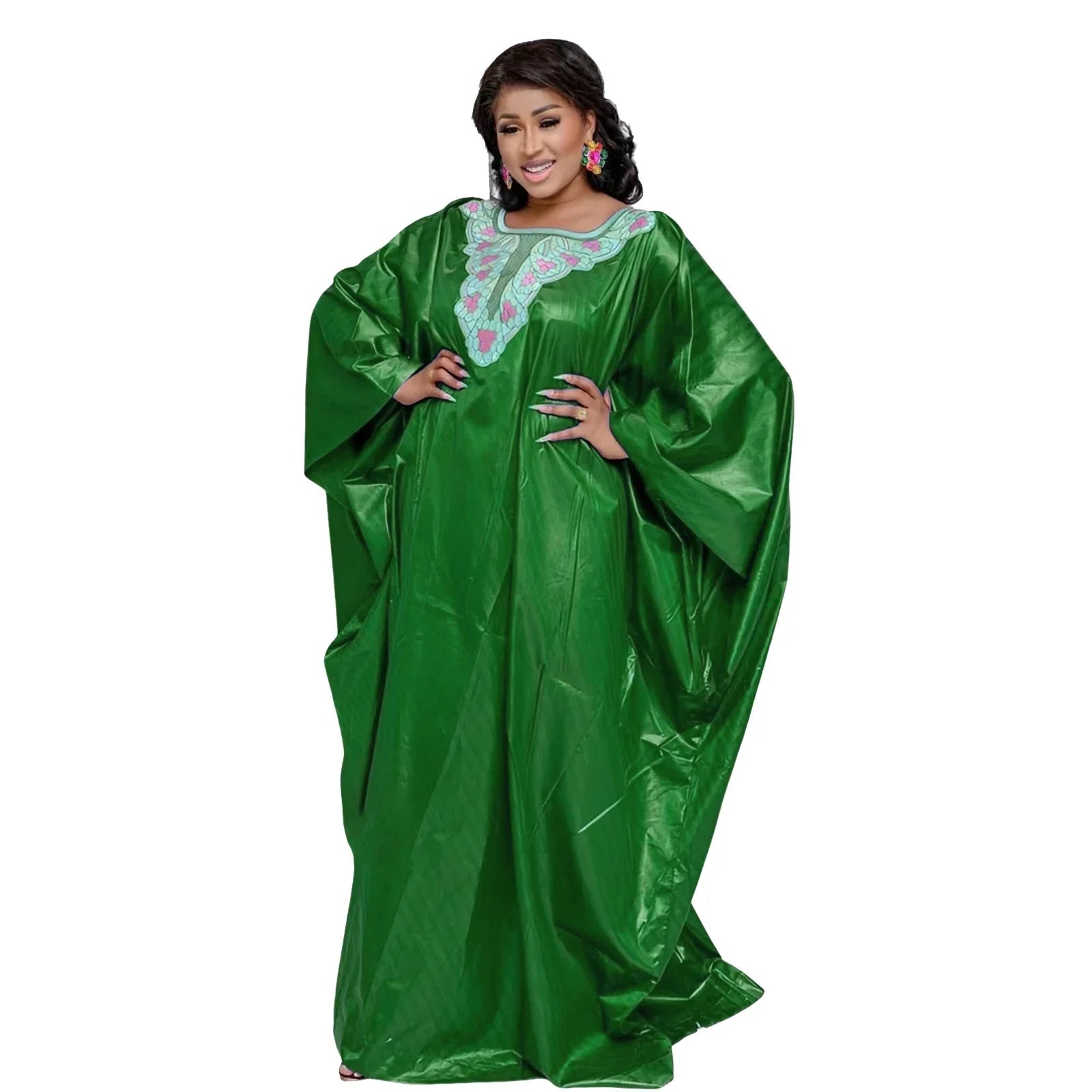African Dresses For Couples Traditional Bazin Embroidery Dresses Floor Length Dress With Scarf Couple Design