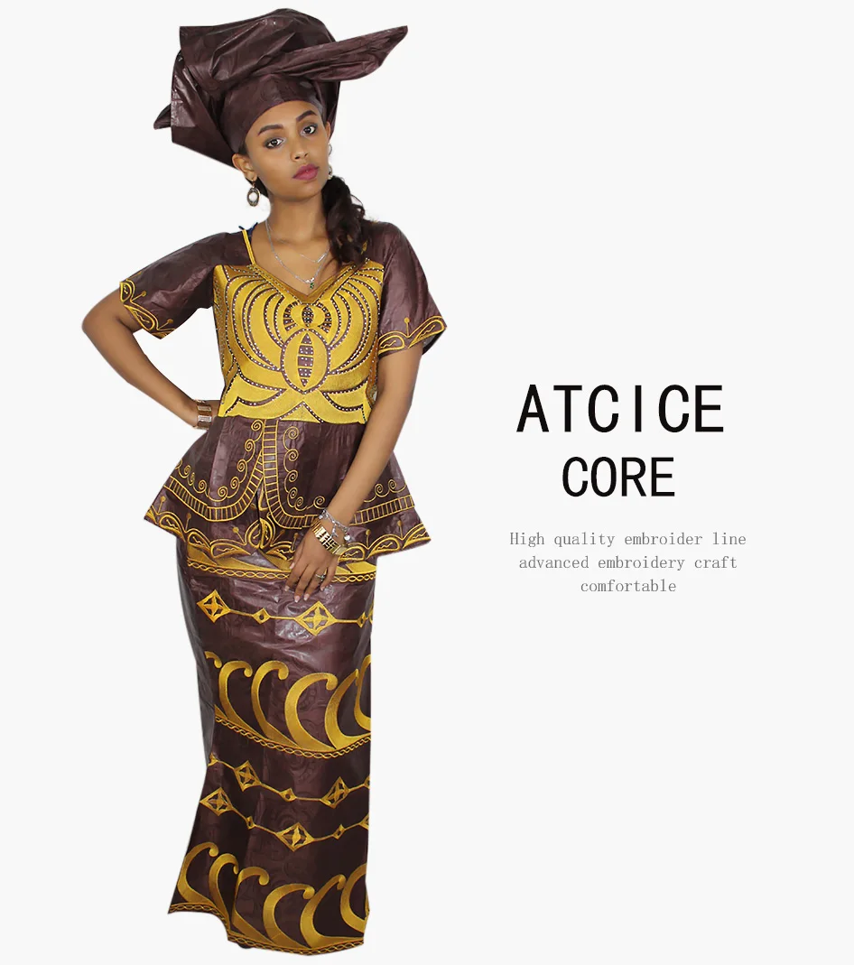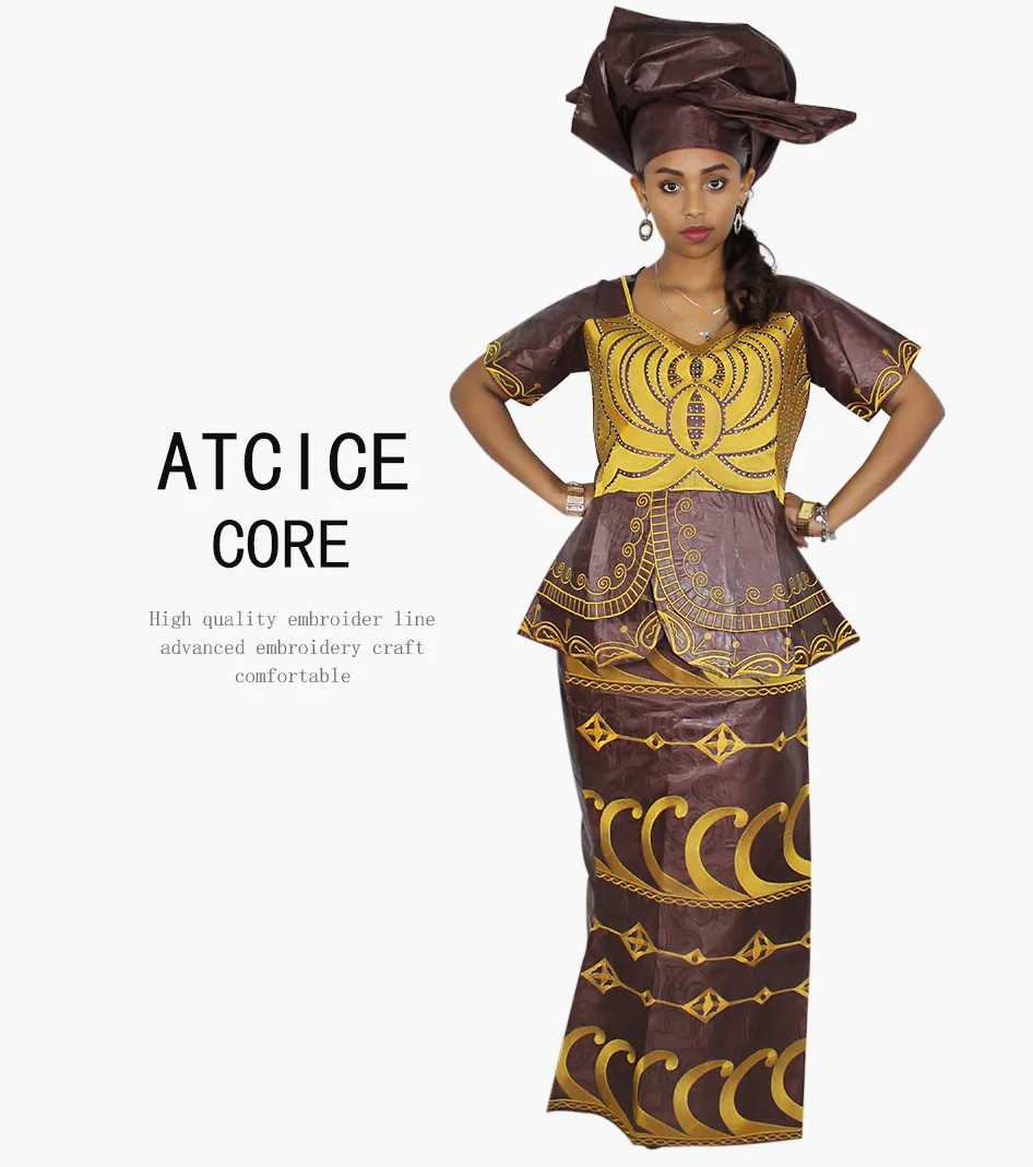 African Dresses For Woman Bazin Riche Computer Emboridery Plus Size Long Dress