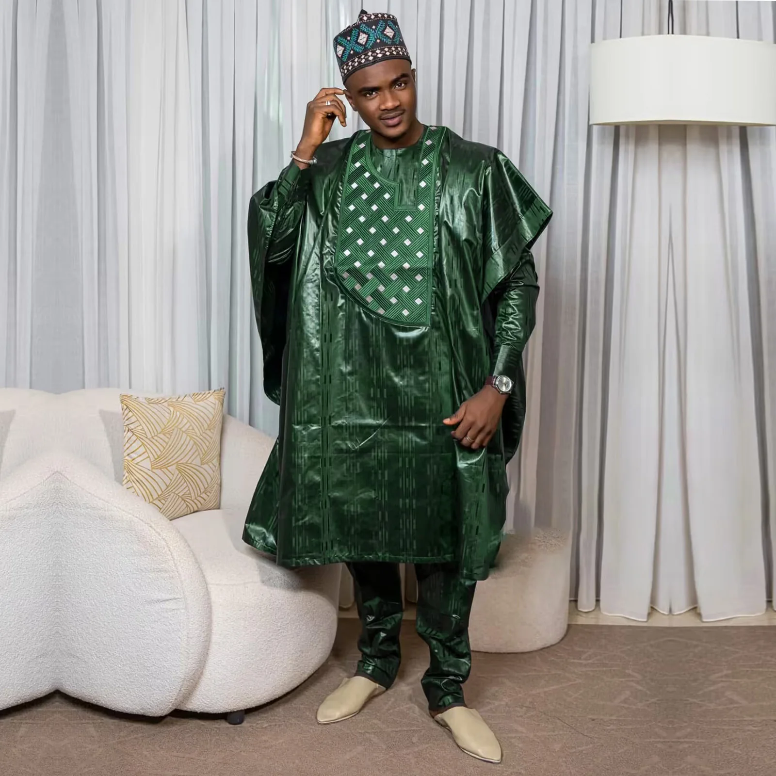 African Dresses For Men Bazin Riche Embroidery Design Dress Man Top With Pants