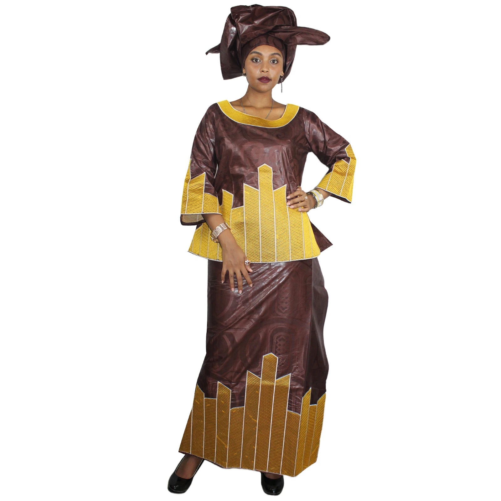 African Dresses For Women 3/4 Sleeve Top With Wrapper And Scarf 3pieces One Set 2 Size Smaller Than Us Size