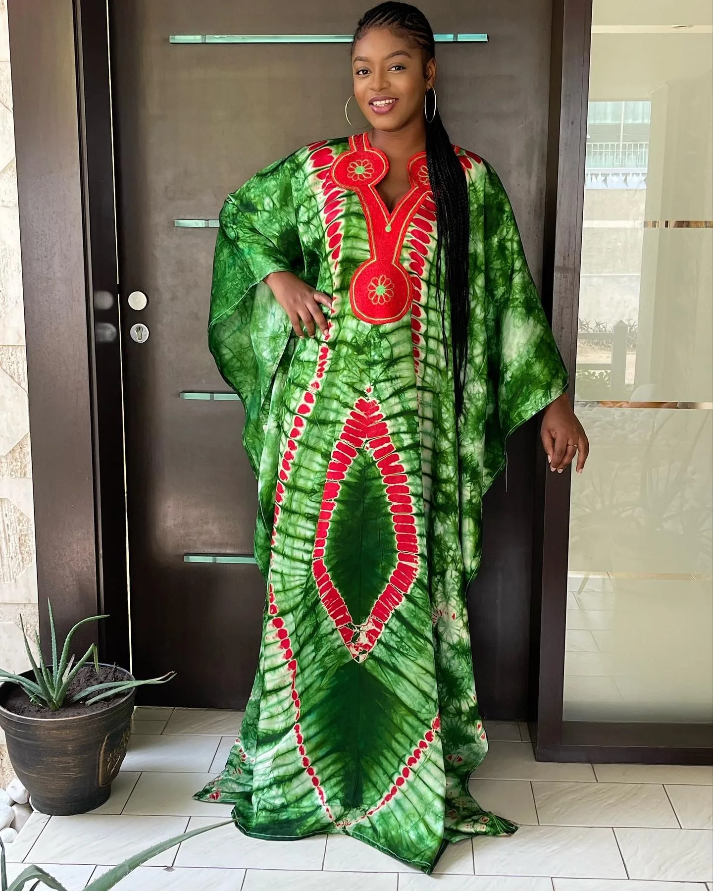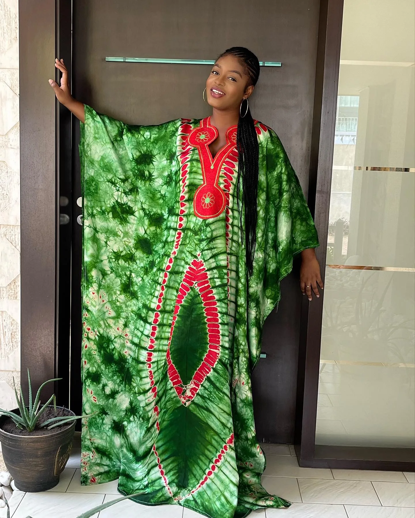 African Dresses For Women Tie Dyed Dashiki Embroidery Design Couple Fashion Elegant Dress With Scarf