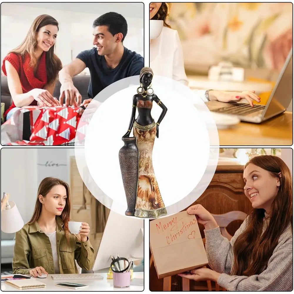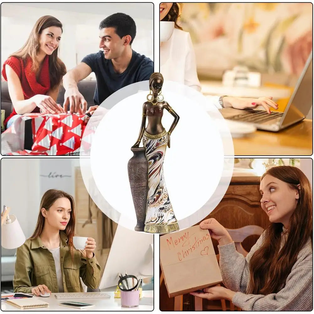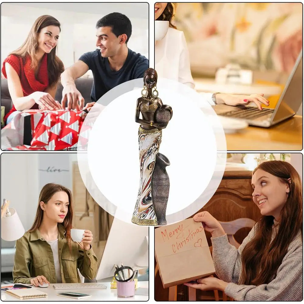Enhance your home decor with these exquisite African style crafts ornaments. Carefully crafted with resin material and special attention to detail, these ornaments are perfect for adorning your bathroom shelf, TV cabinet, desk, or any other space. The African woman statue beautifully displays the rich culture and traditions of Africa. Perfect for Thanksgiving and Christmas decorations.