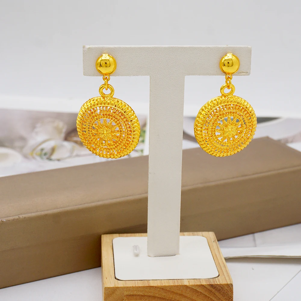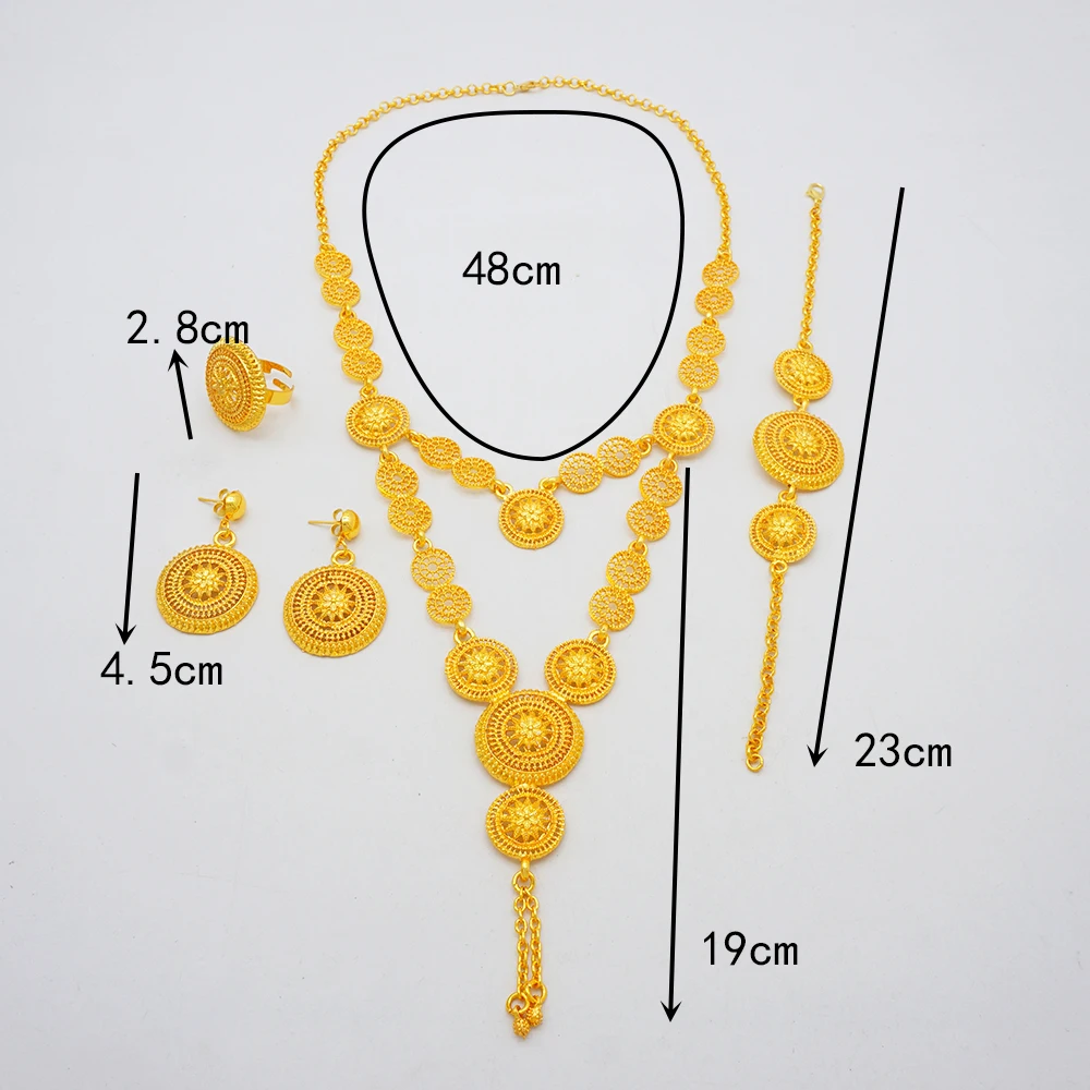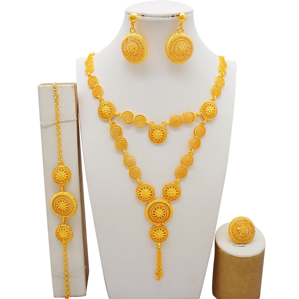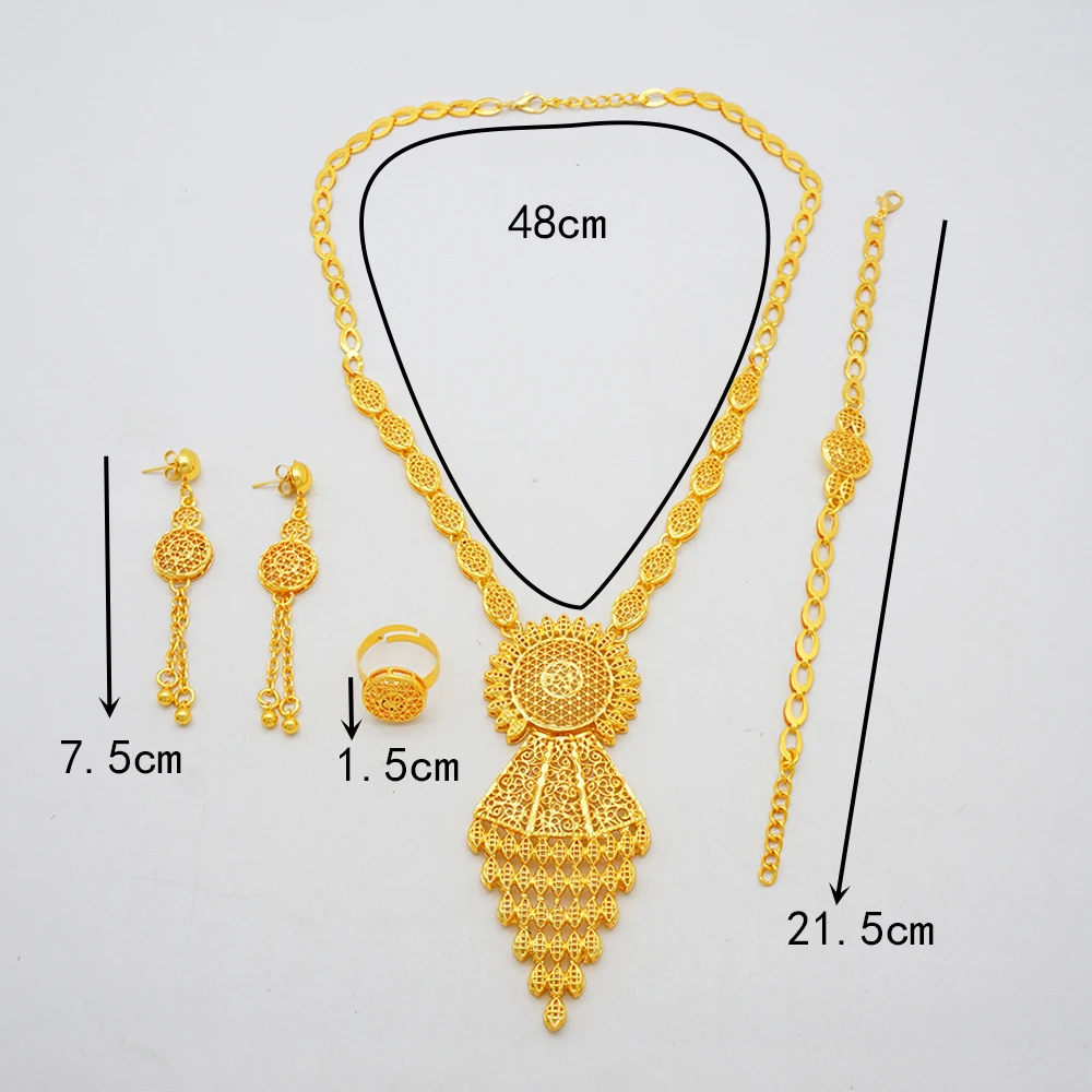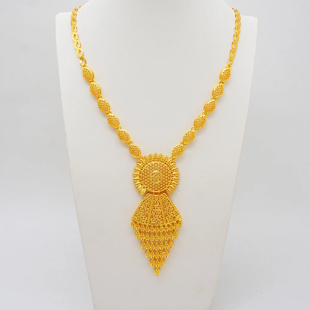 African Ladies Dubai 24k Gold Plated Long Necklace Set Bridal Banquet Wedding Jewelry Set Accessories