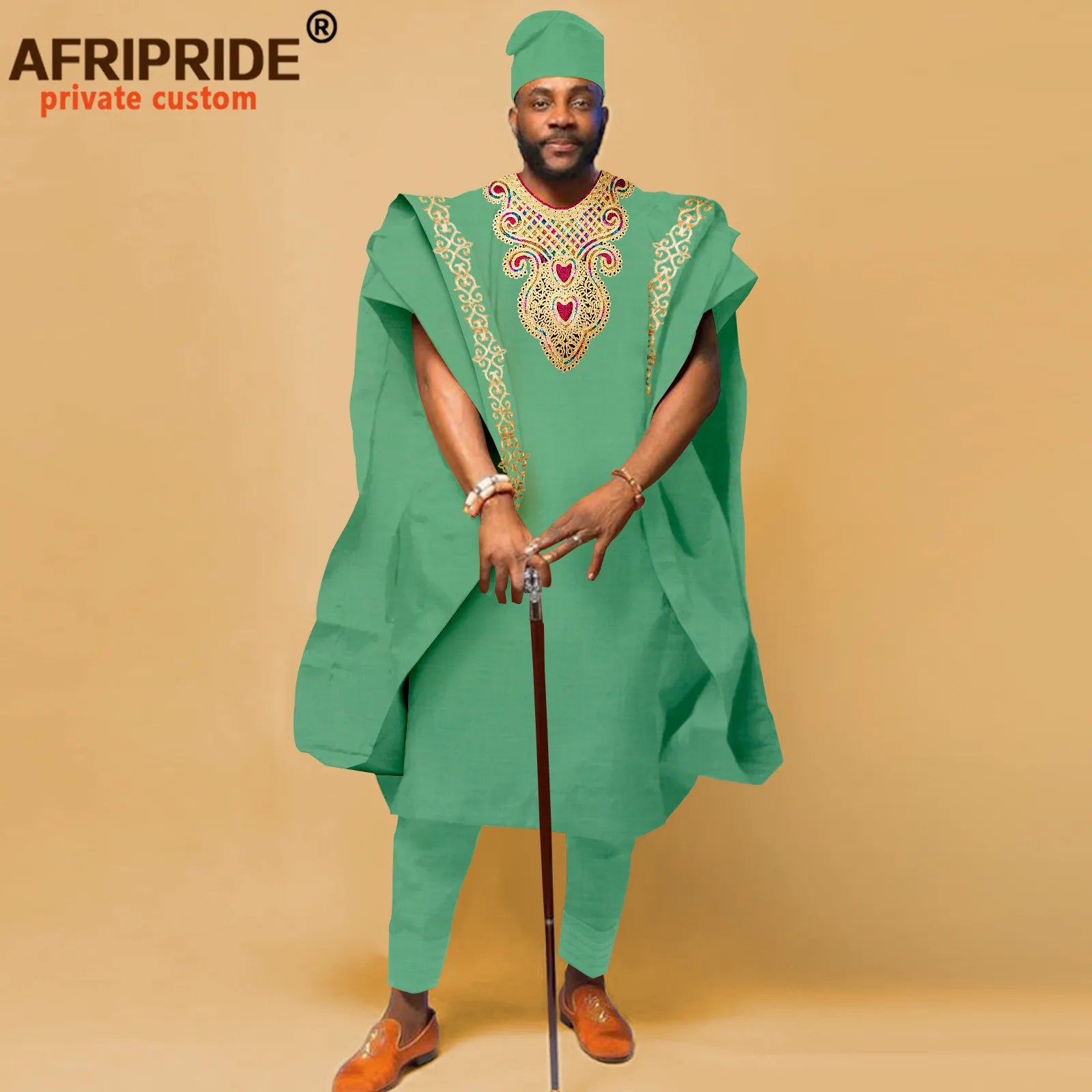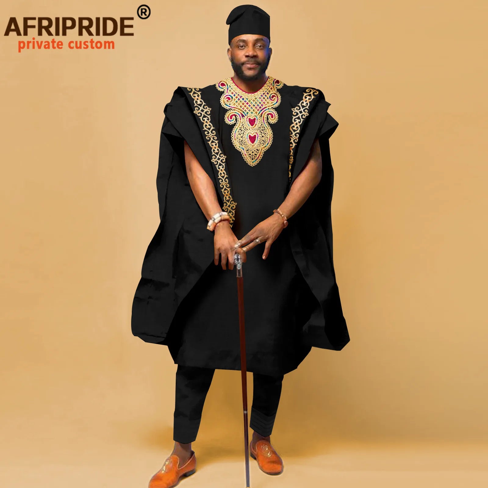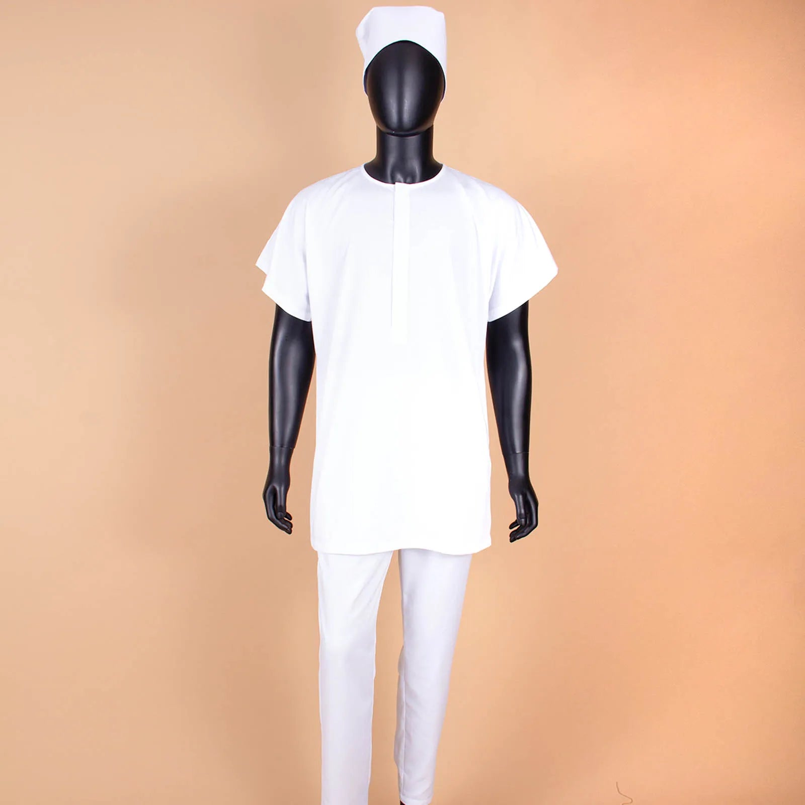 This distinguished four-piece ensemble showcases authentic African craftsmanship, featuring a traditional agbada shirt paired with coordinating pants and hat. Meticulously constructed from 100% premium cotton with intricate wax and batik embroidery detailing, the set delivers both cultural authenticity and refined elegance. The shirt boasts a classic o-neck design with functional pockets and full lining, while the pants feature a secure zipper closure and full-length cut. Short sleeves and standard weight fabric ensure comfort across spring and summer occasions. Ideal for weddings, evening celebrations, and formal gatherings, this versatile collection honors heritage while maintaining contemporary sophistication. Available for private customization to suit your specific preferences.