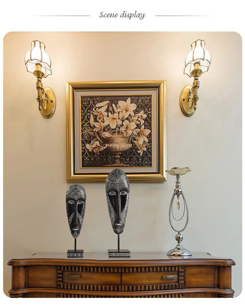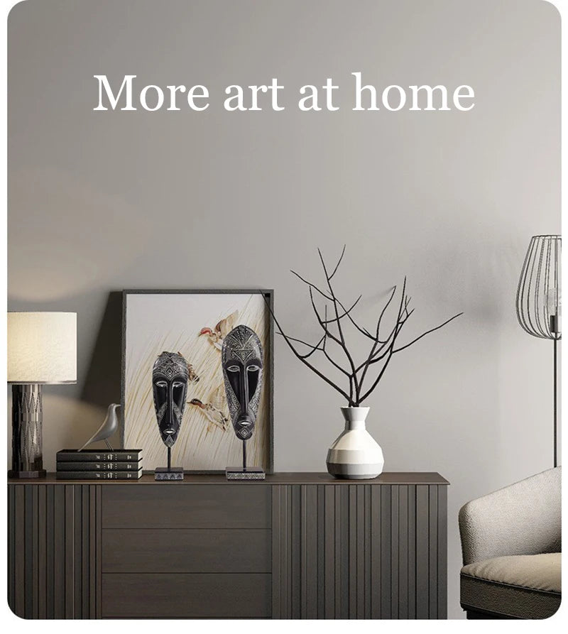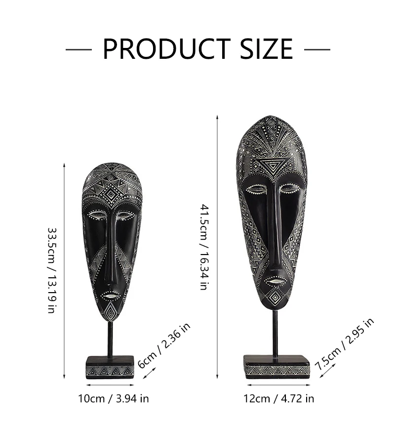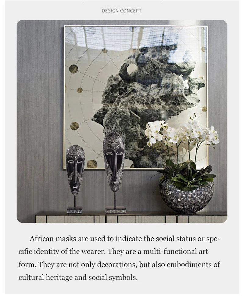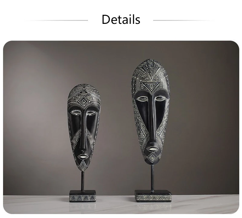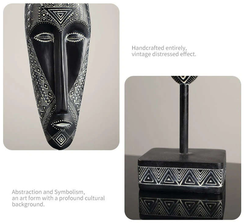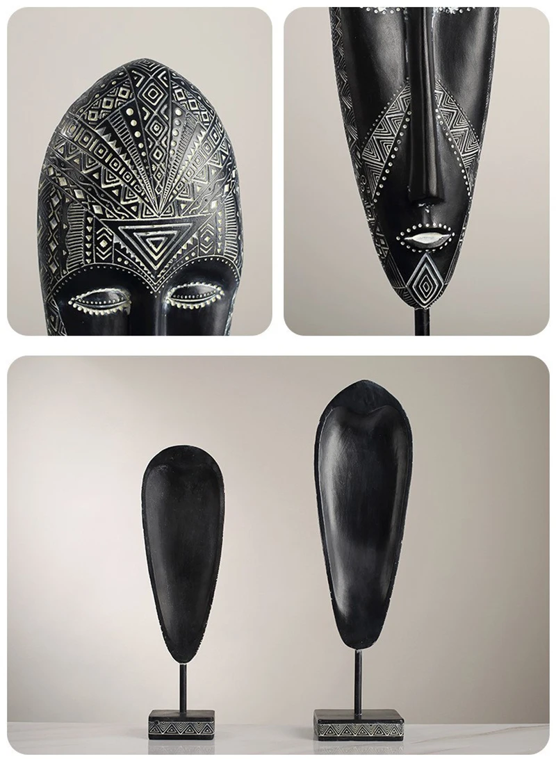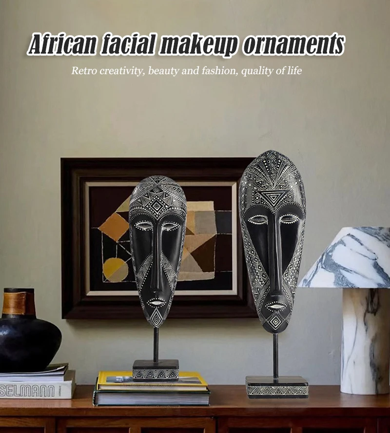 African Style Face Mask Ornament Sculpture Decoration Resin Arts And Crafts Originality Pattern Carving Retro With Base For Home