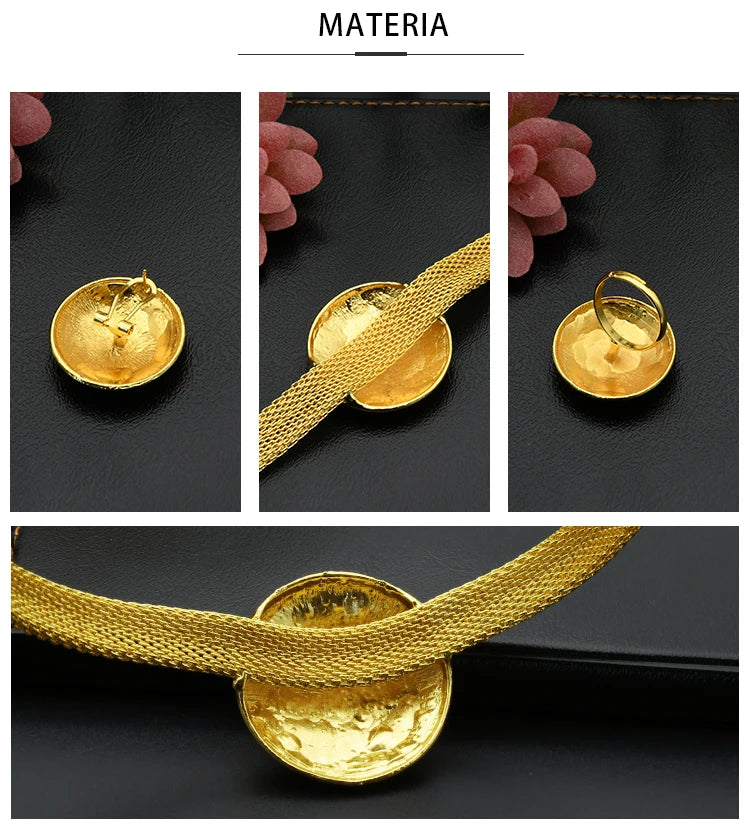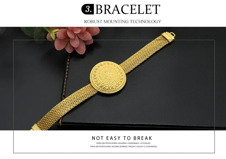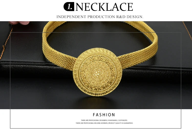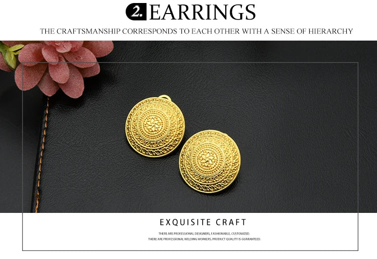 ANIID Womens Ethiopian Gold Color Jewelry Set Bridal Dubai Jewellery Wedding Brazilian Eritrean African Earring Necklaces Set