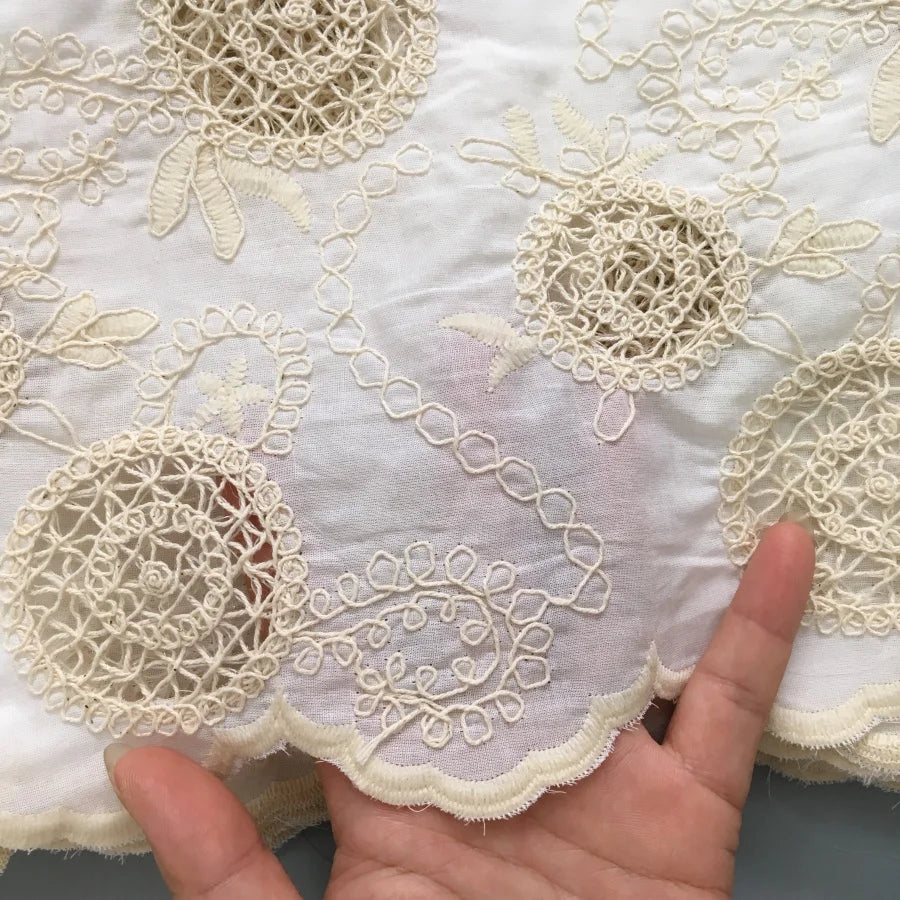 Blush Pink Swiss Voile Lace Fabric | Delicate White Rosette Bouquets & Filigree Tendrils | Petal-Hem Luxury Couture S4371