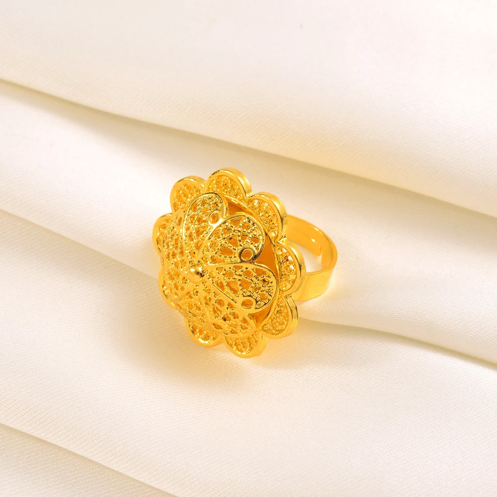 Ethiopian Gold Plated Bridal Jewelry Sets Necklace Earrings Bangle Ring Gifts Wedding Jewellery Set For Women