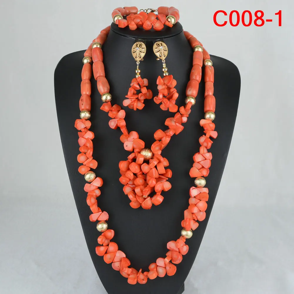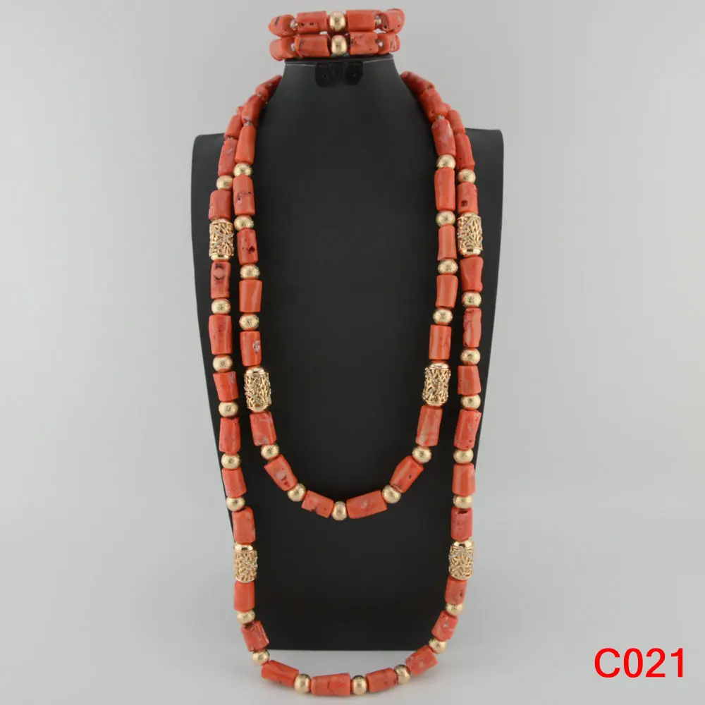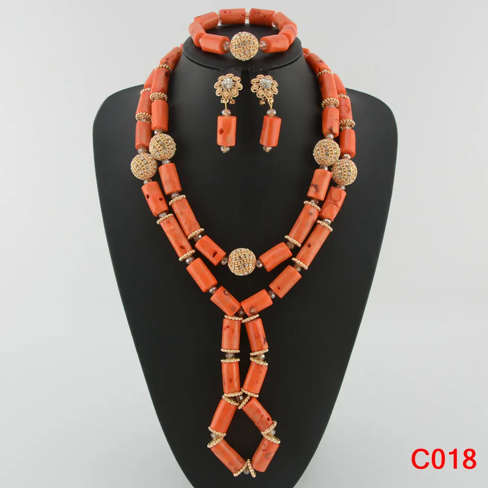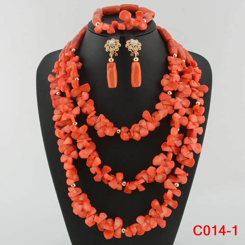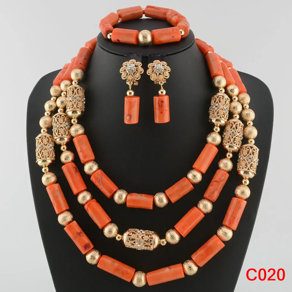 Fashion Nigerian Coral Beads Necklace Earrings Set for Bride New African Wedding Jewelry Set
