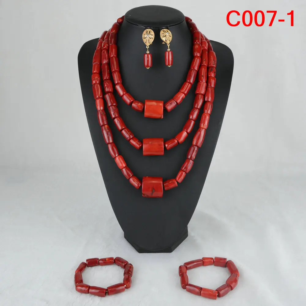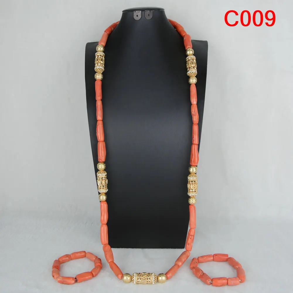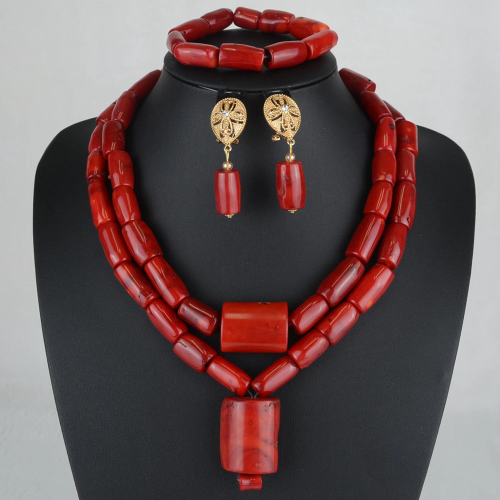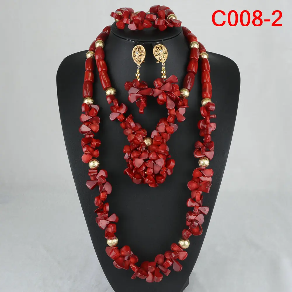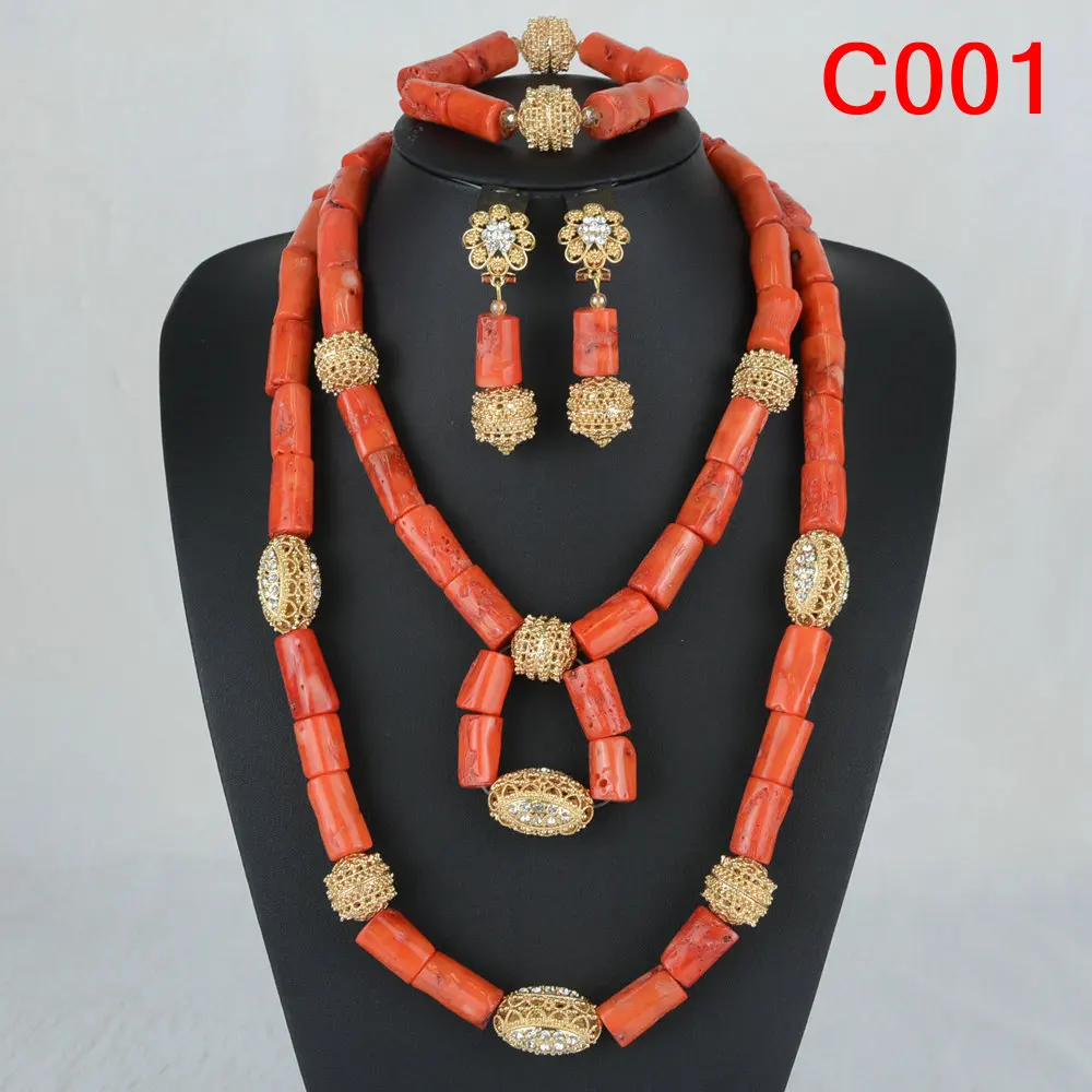 Fashion Nigerian Coral Beads Necklace Earrings Set for Bride New African Wedding Jewelry Set