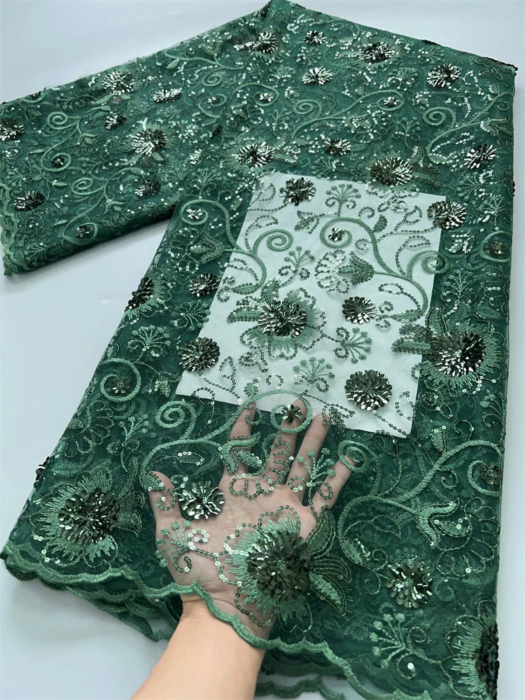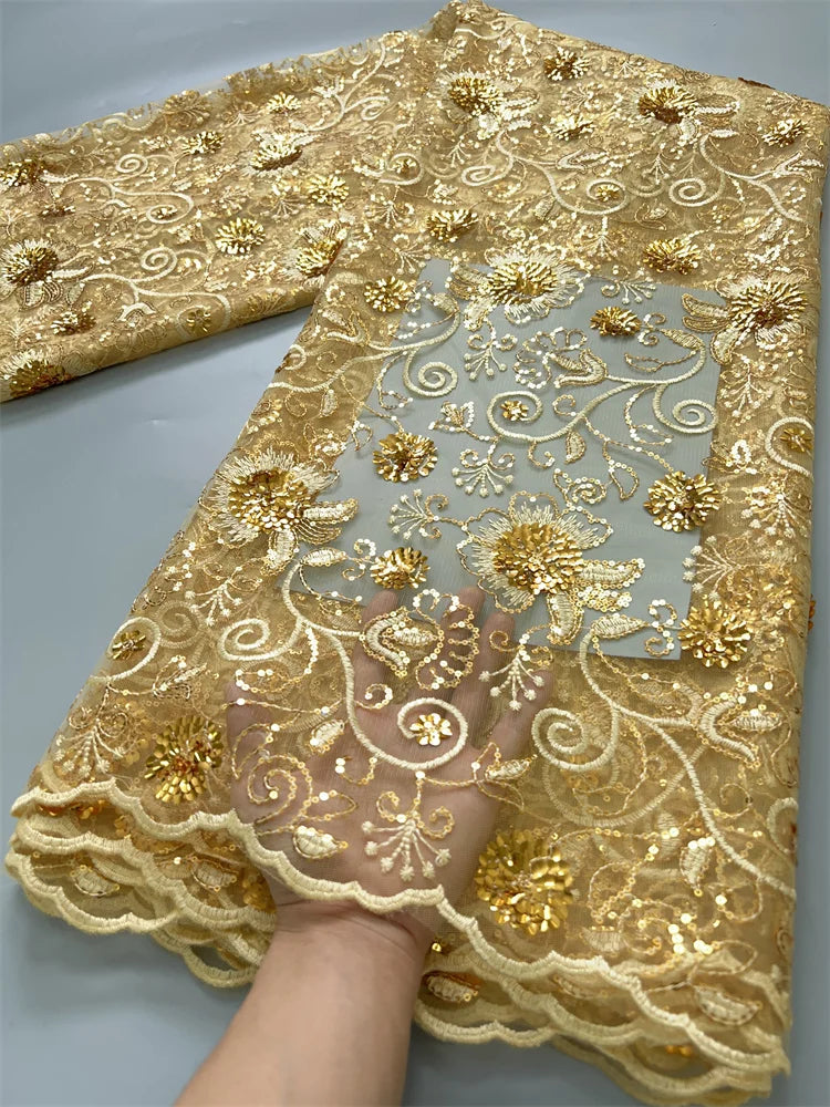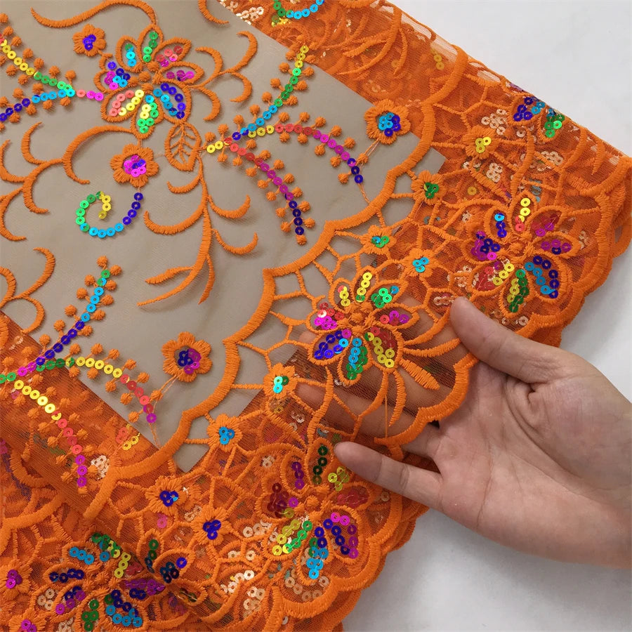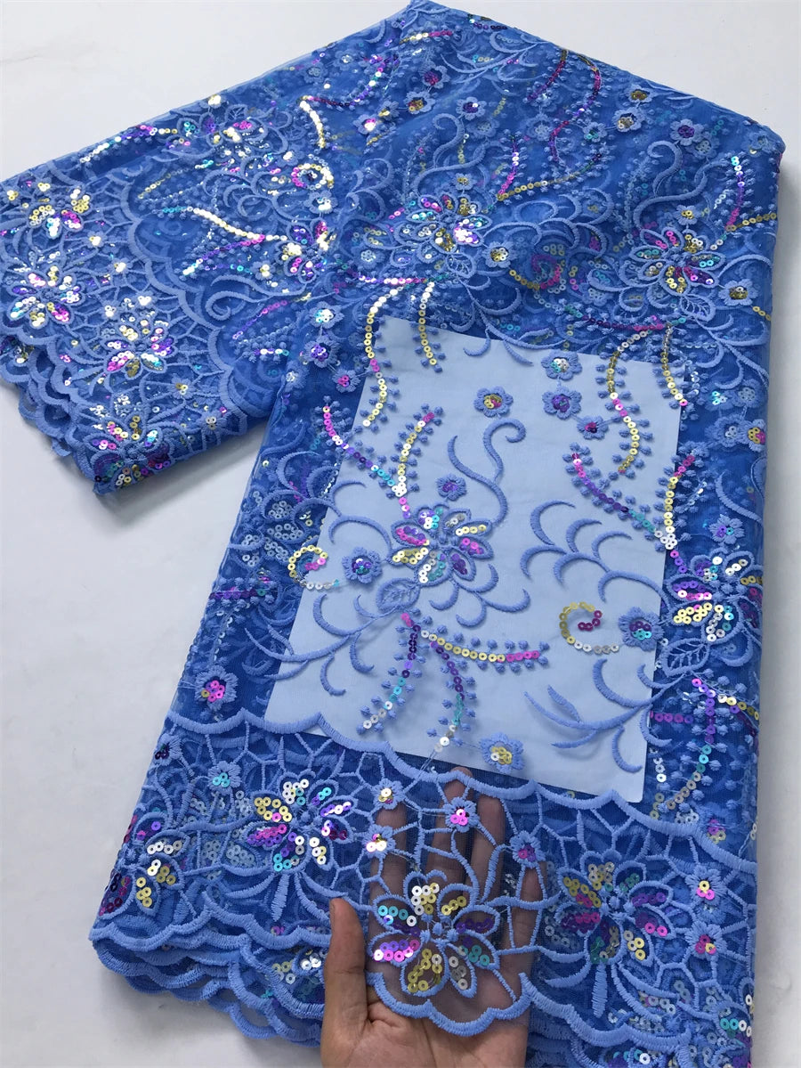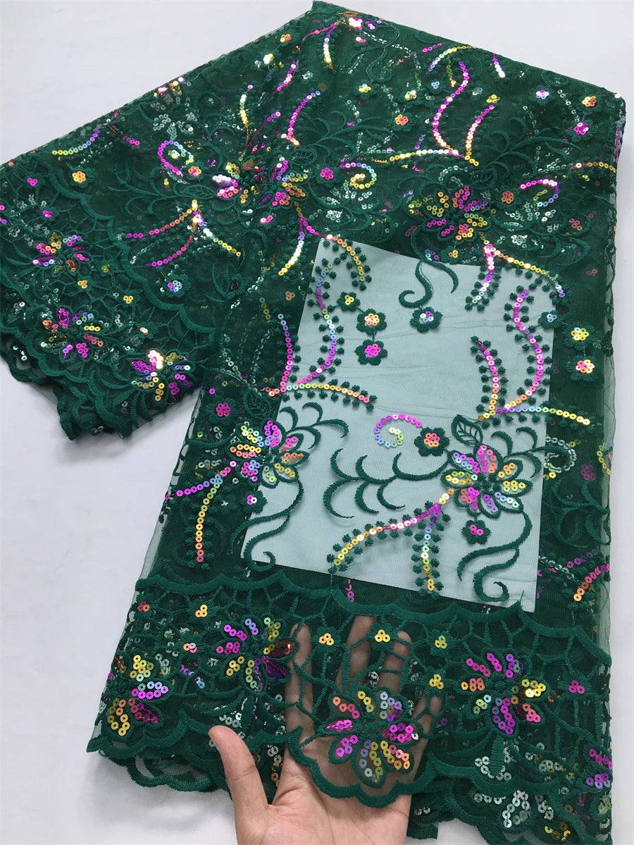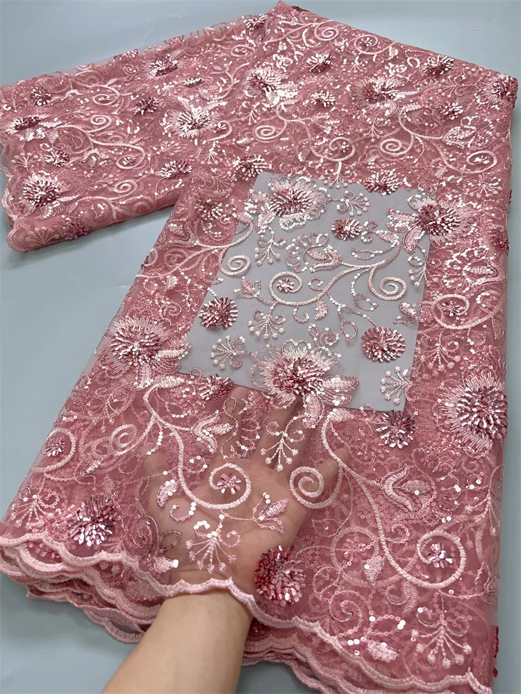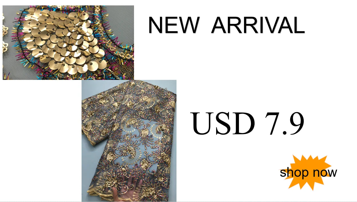 African Mesh Lace Fabric ;Tulle Beaded Lace Fabric ;Nigerian Sequins mesh lace
