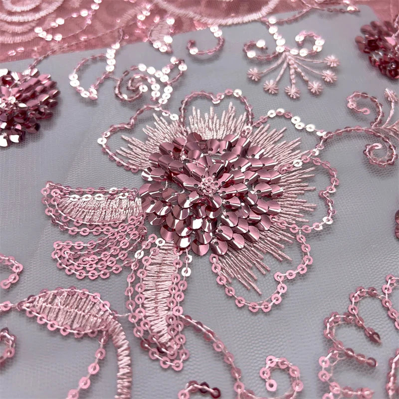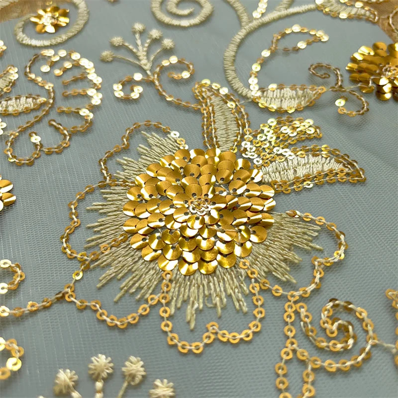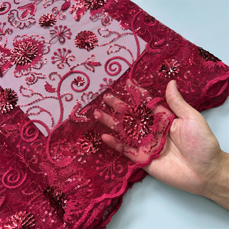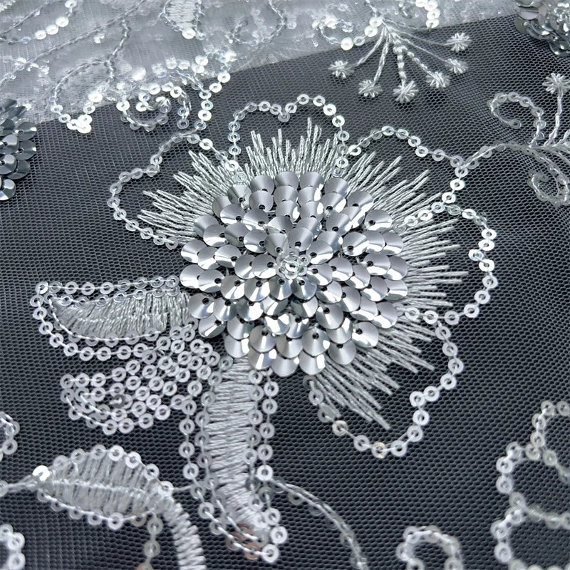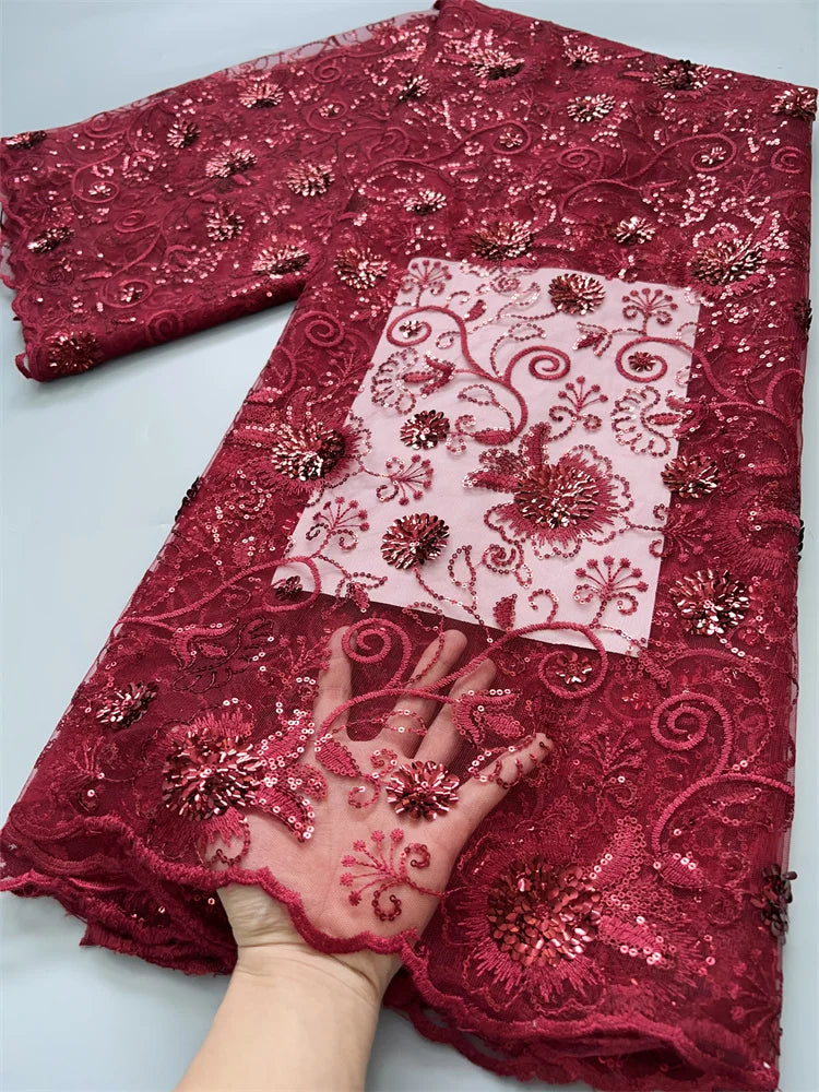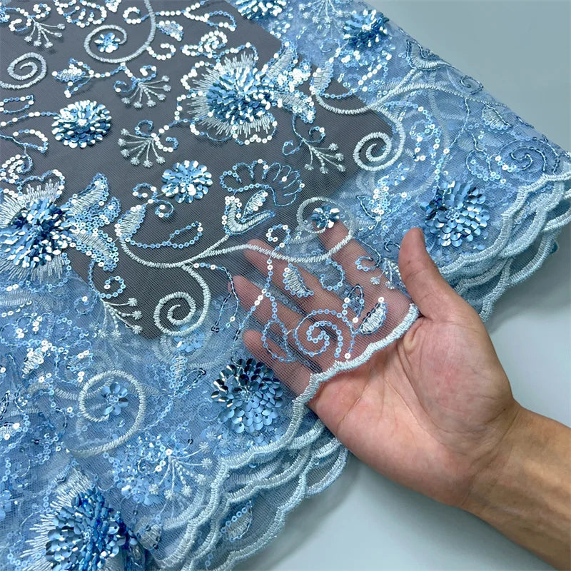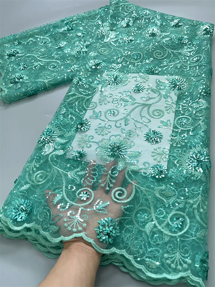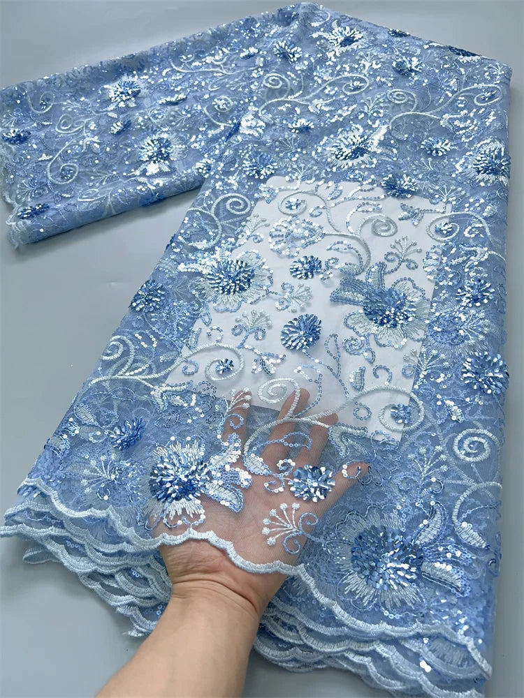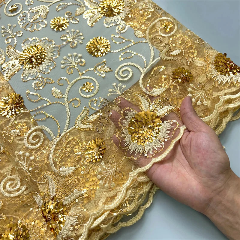 African Mesh Lace Fabric ;Tulle Beaded Lace Fabric ;Nigerian Sequins mesh lace