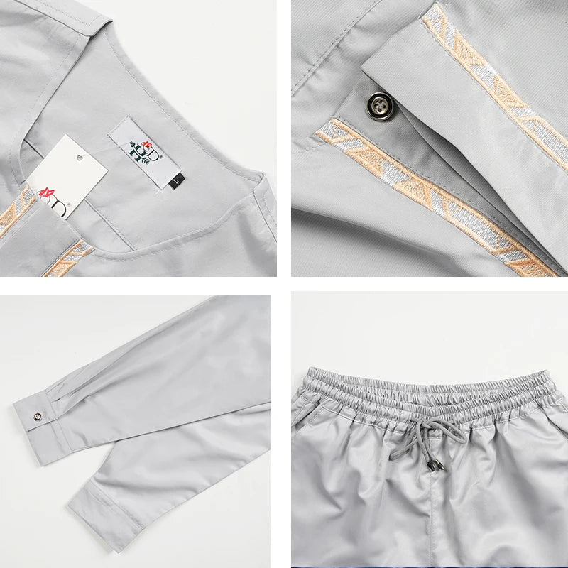 H&D African Agbada Robe Men 2 Pieces Set Embroidery Dashiki Shirt Africa Clothes Long Sleeve Cover Tops Pants Suit Robes Outfit