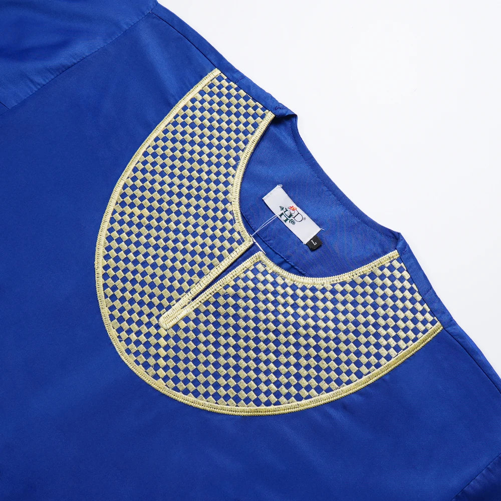 H&D African Clothes for Men 2 Pieces Set Elue Embroidered Tops and Pants Traditional Clothing Rich Bazin Original Wedding Party