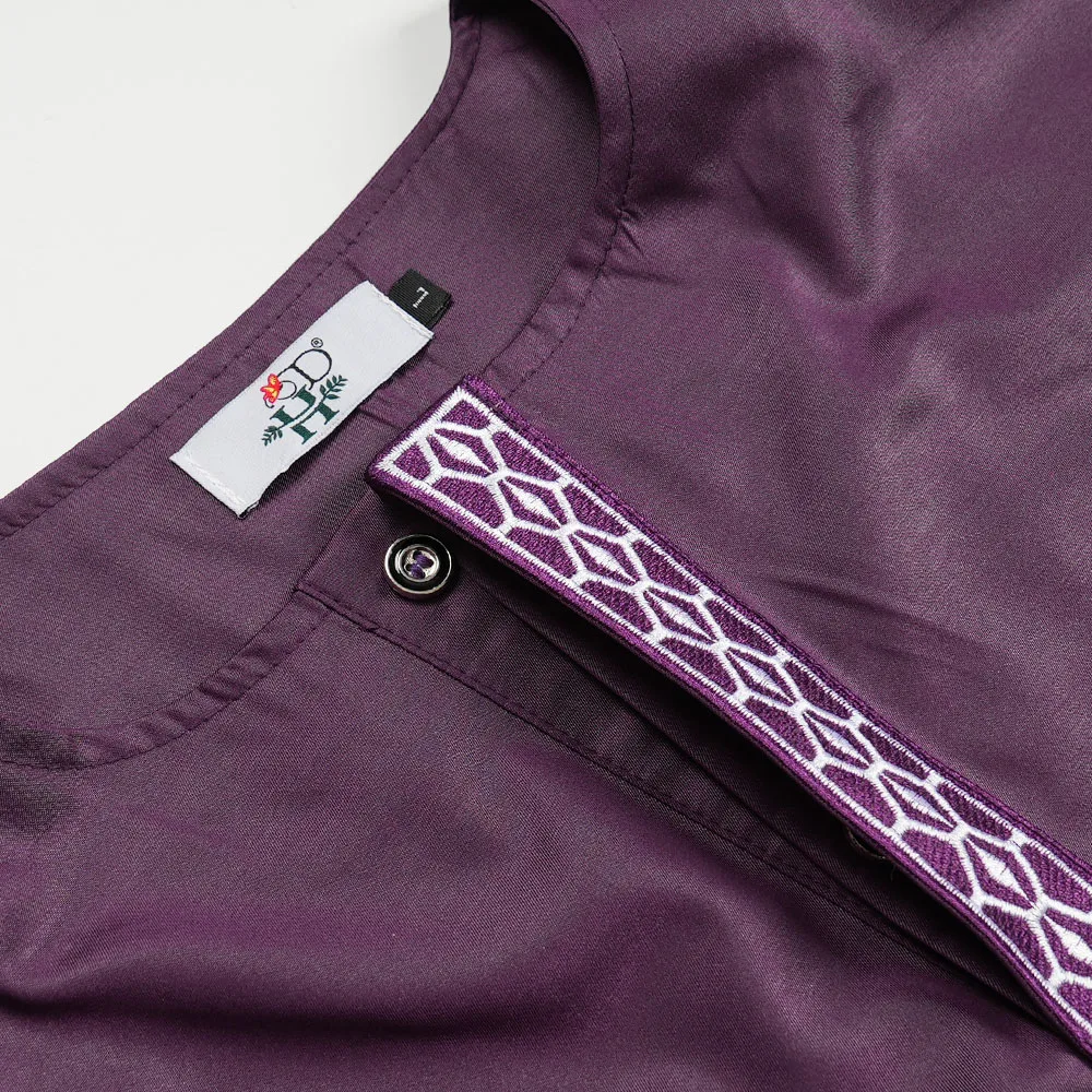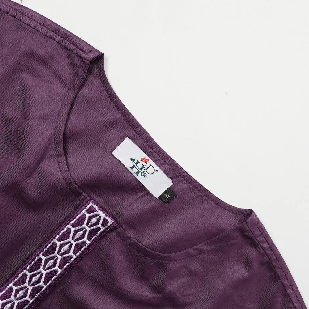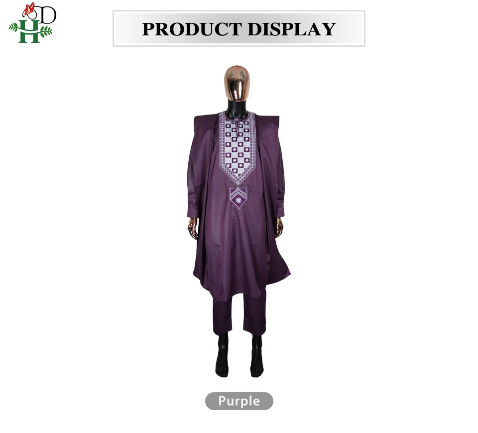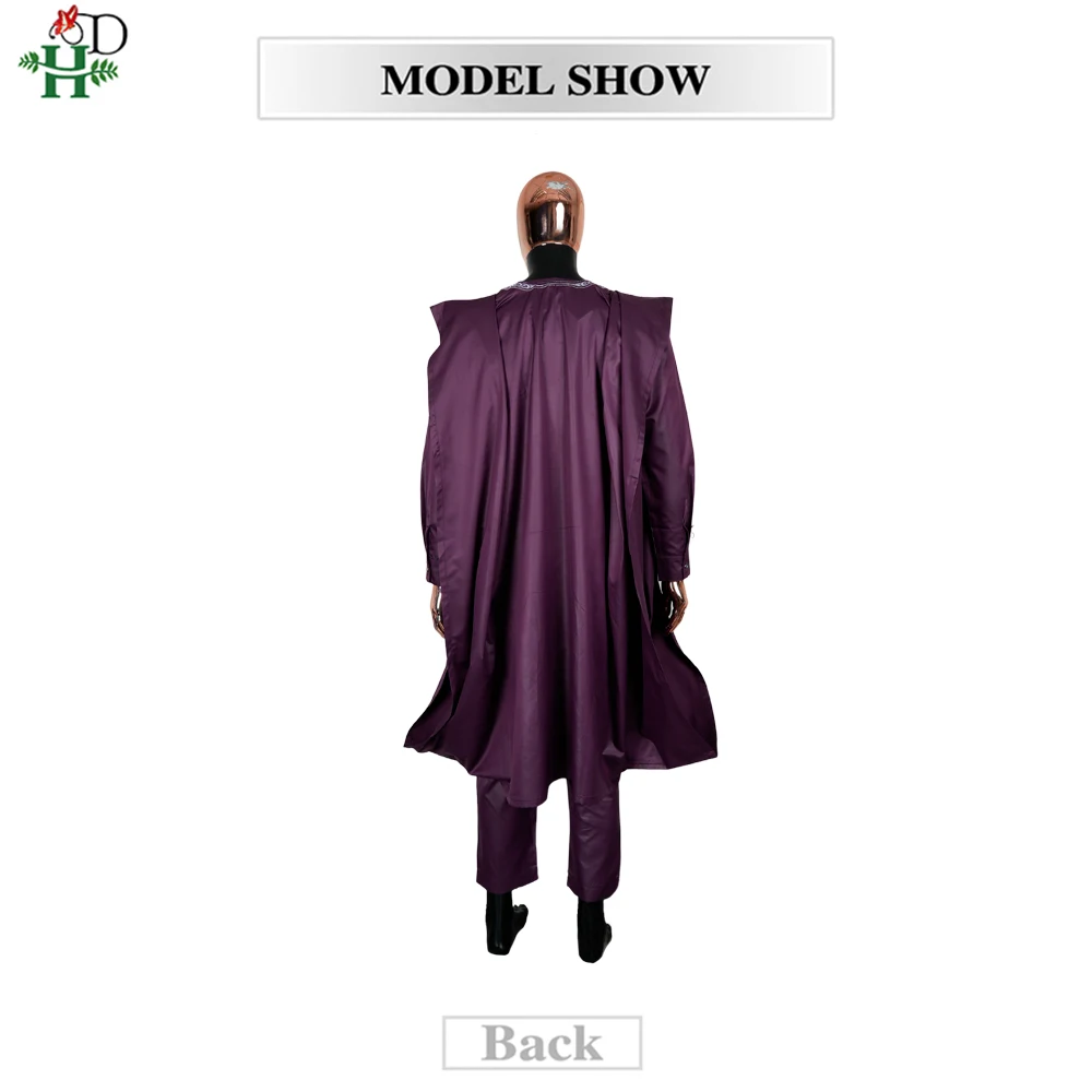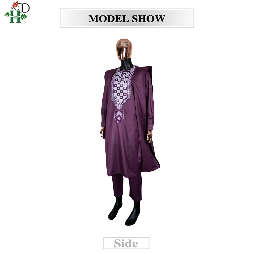 H&D African For Men Traditional 3PCS Outfit Thobe Set Purple Agbada Embroidered Robe Plus Size Wedding Christmas BouBou Ramadan