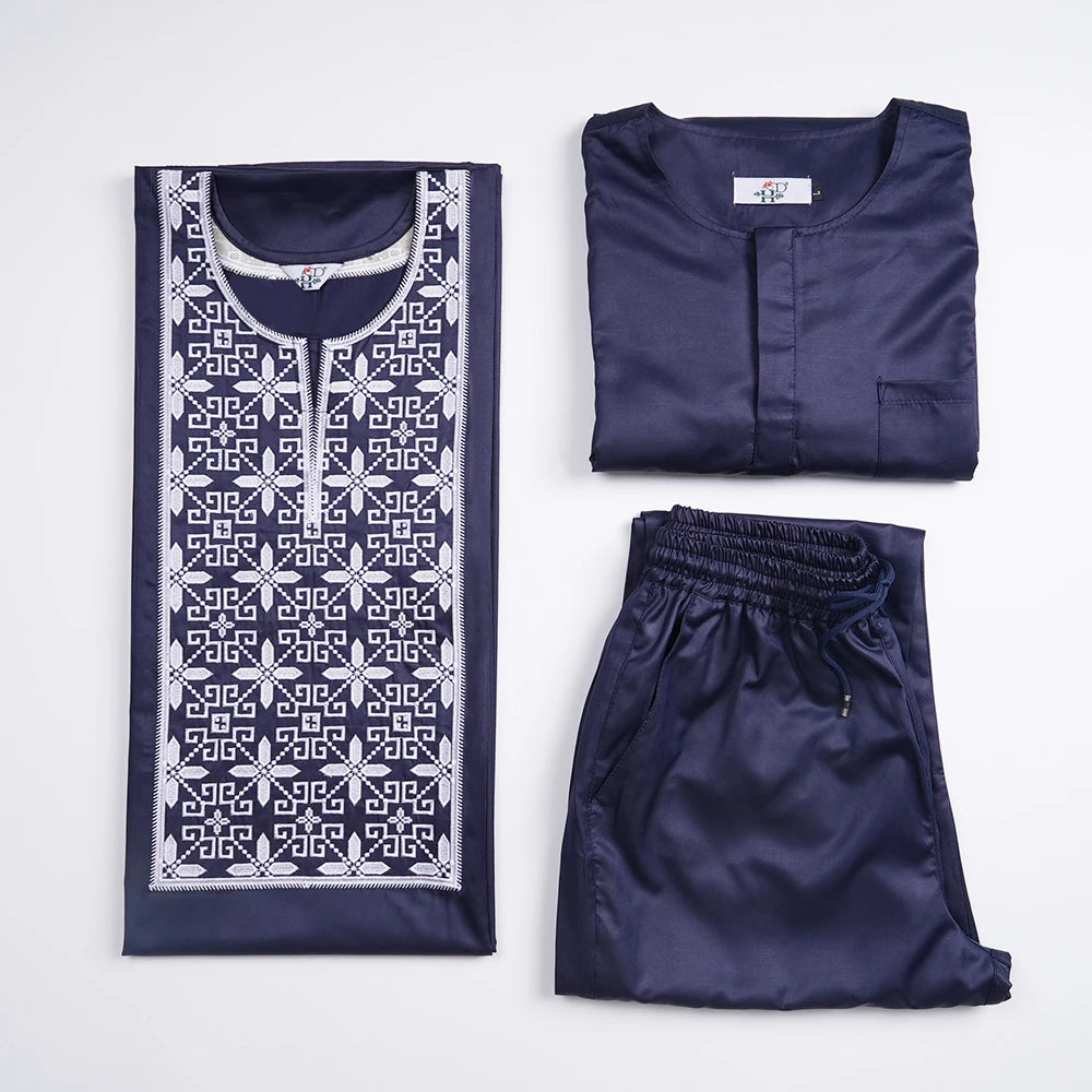 H&D African Suit For Men Robe Shirt Pants Set Long Sleeve Tops Embroidery Agbada Clothes Blue Africain Homme Traditional Robes