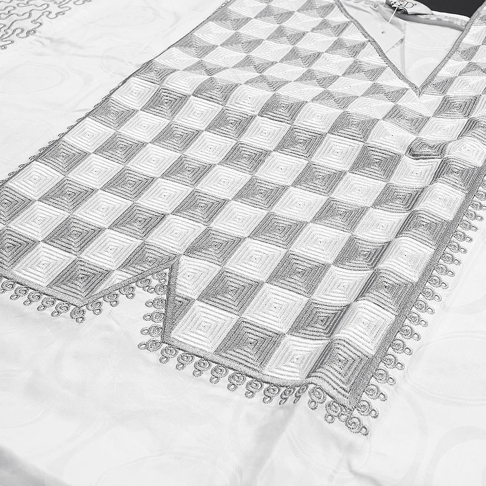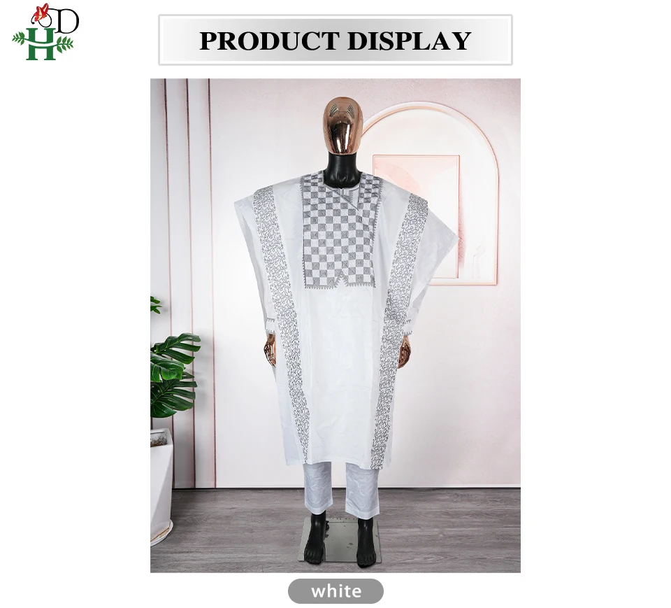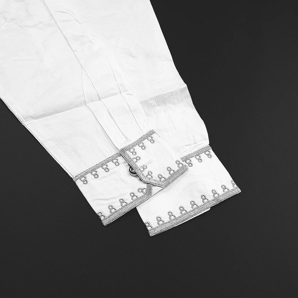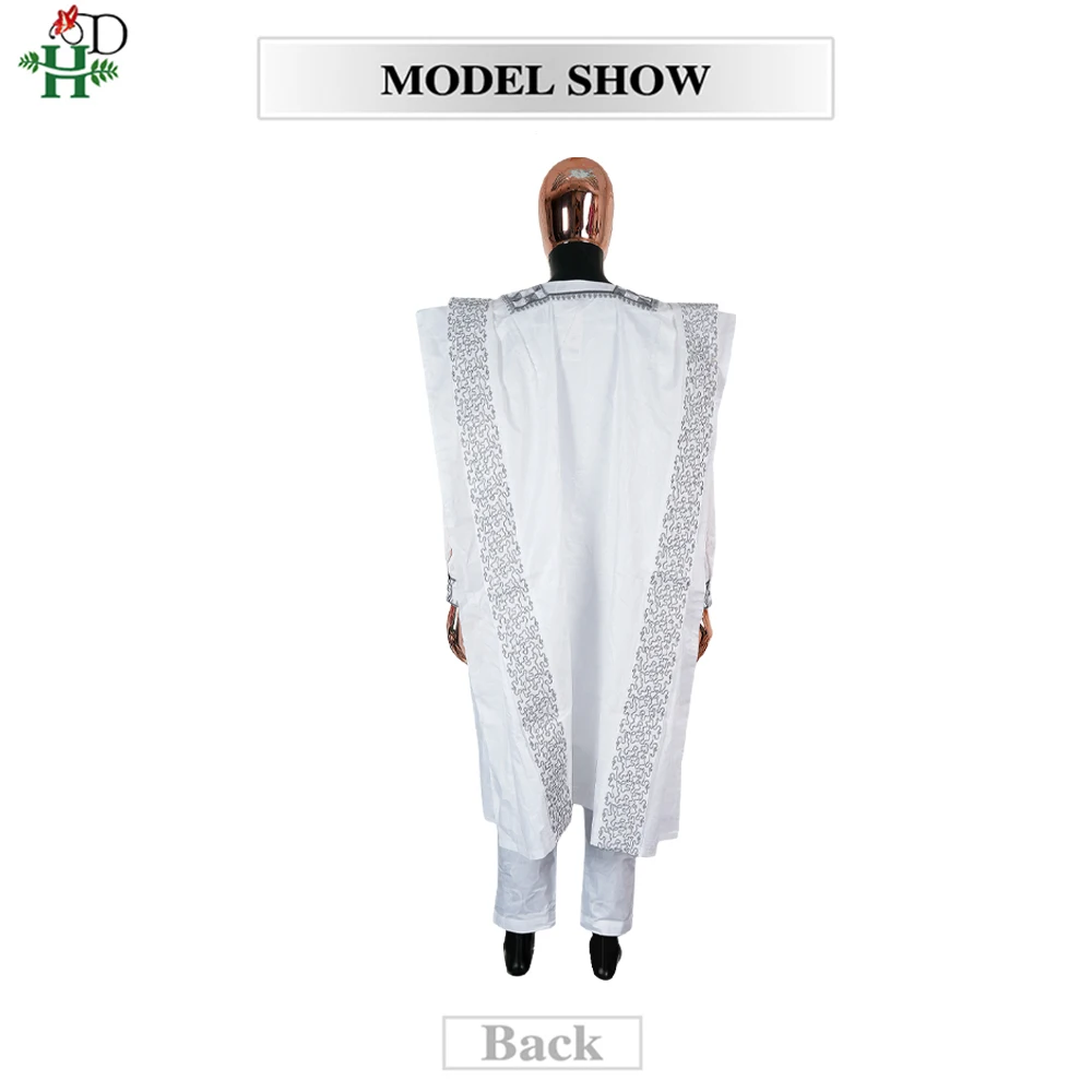H&D New In African Summer Men's Long Sleeve Suit White Embroidery Dashiki Shirt Pants Sets 3 Pieces Outfits Wedding Party 2025