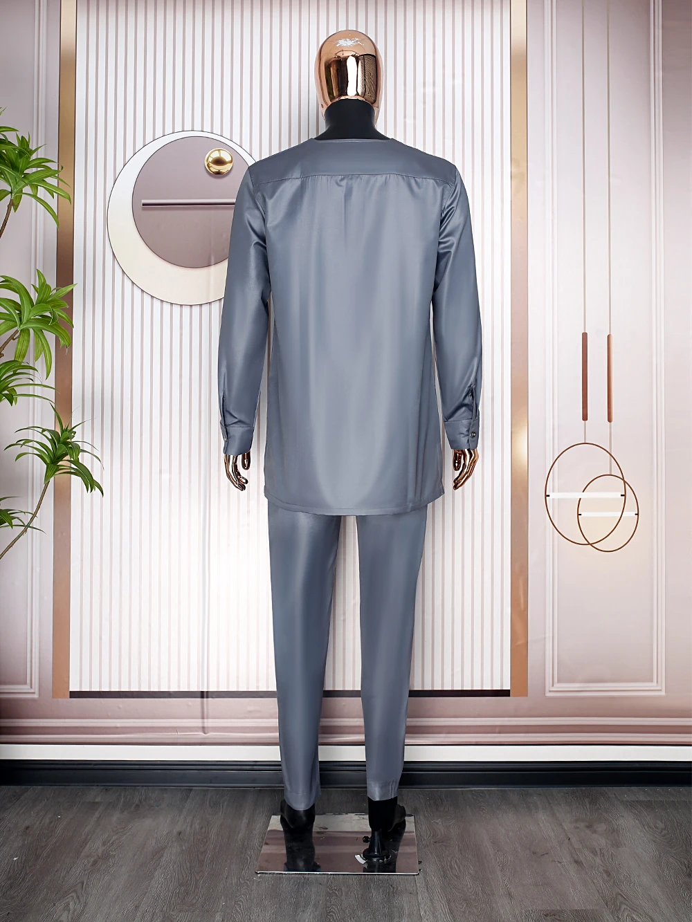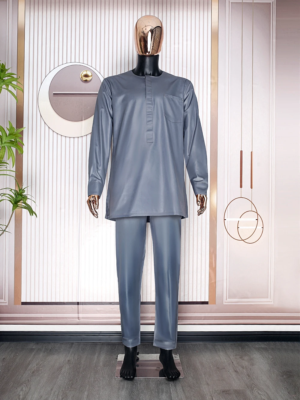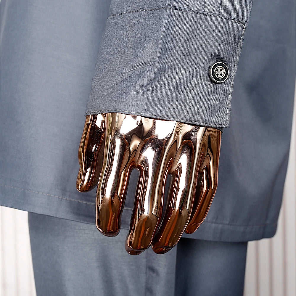 H&D South African Traditional Wear Formal Attire Bazin Riche Dashiki Gray Shirt Pants Robe Suit Agbada Men's wedding party 2024