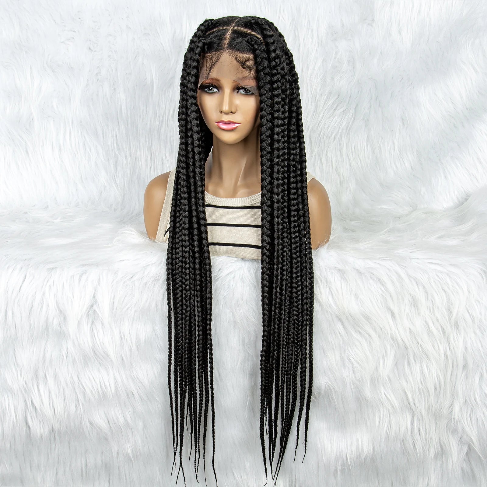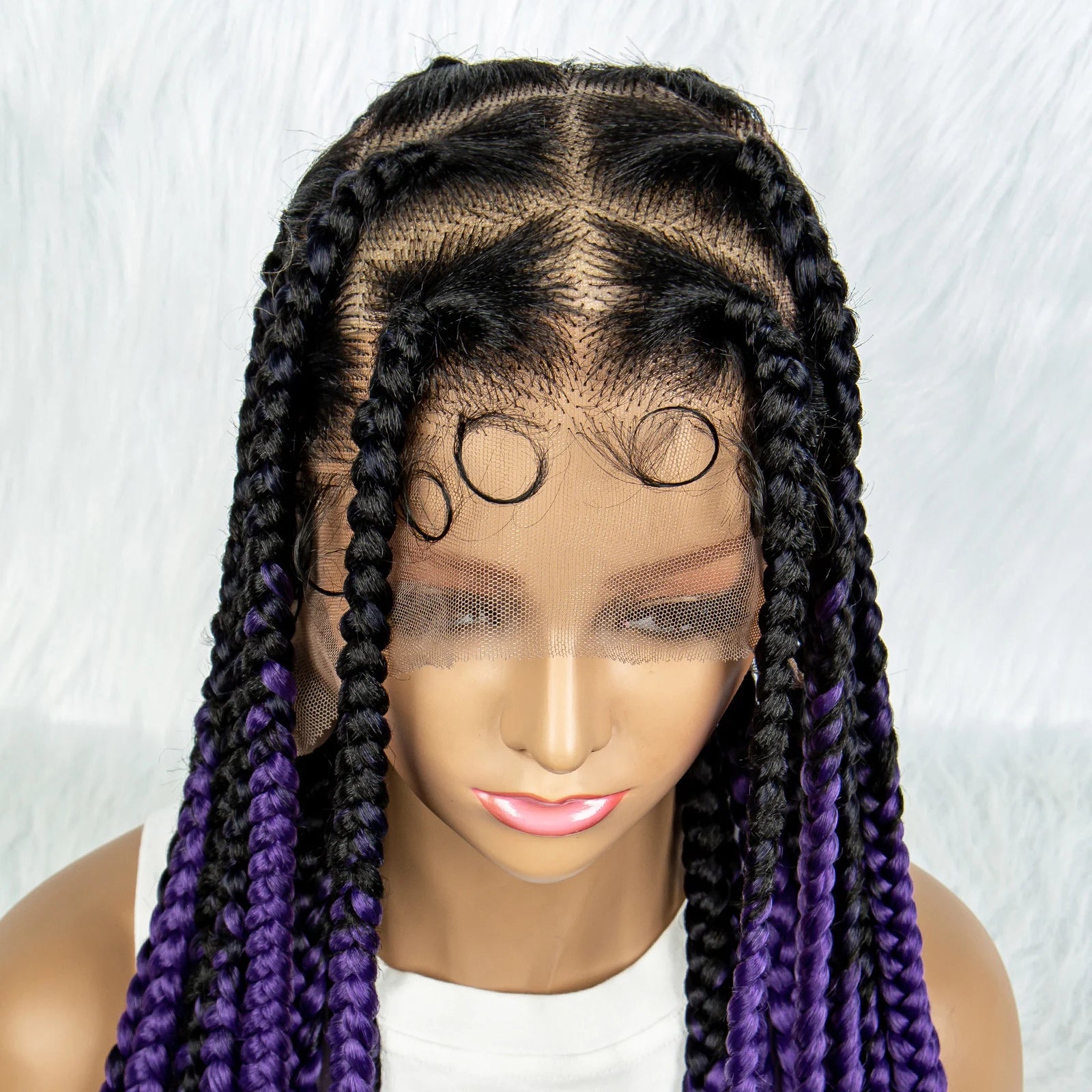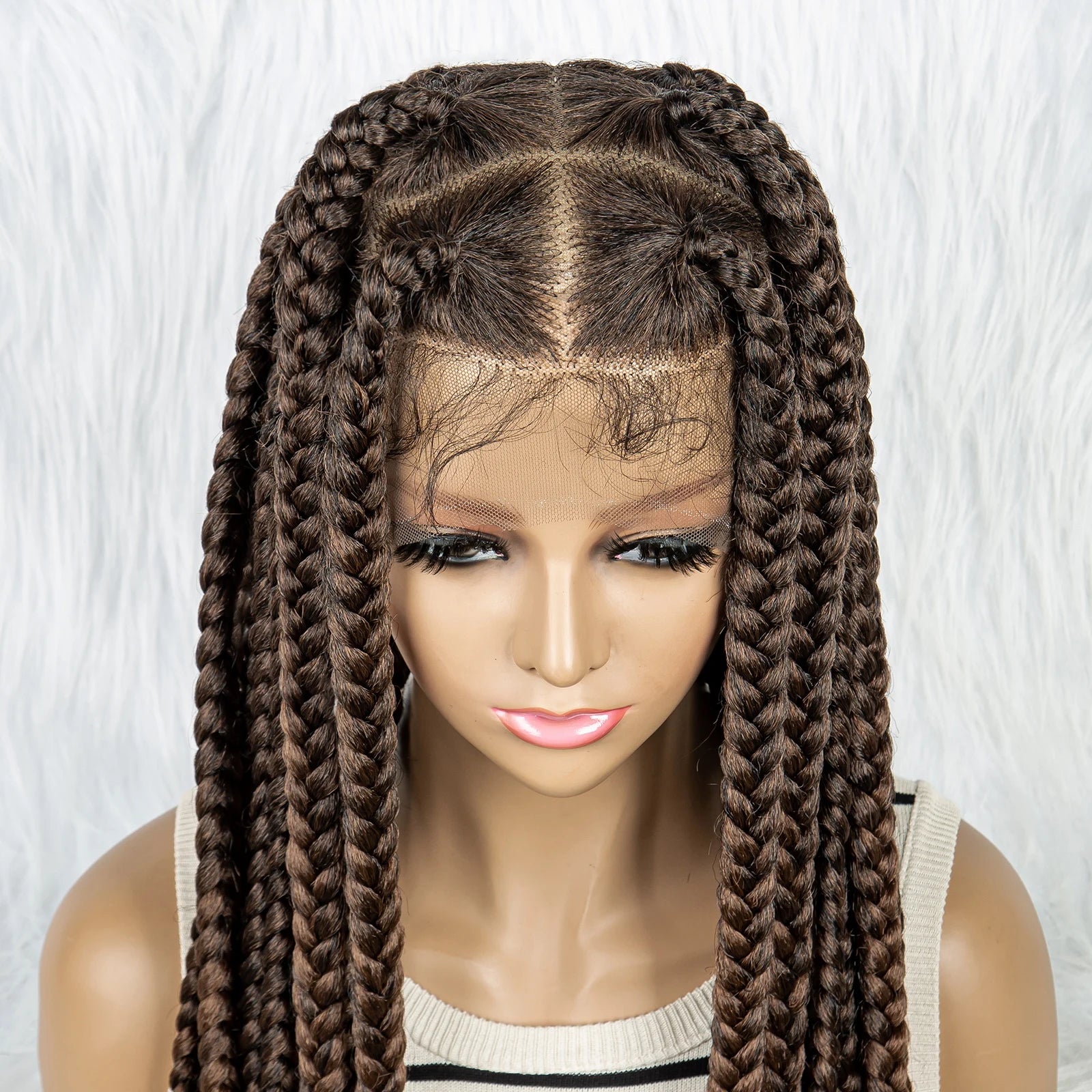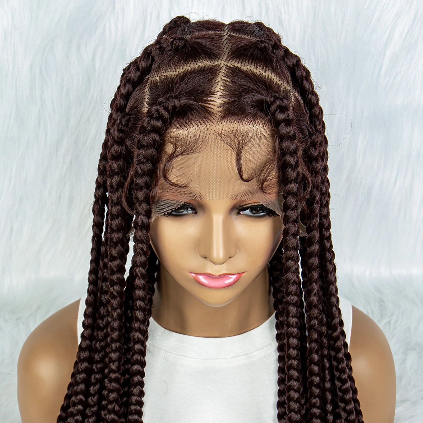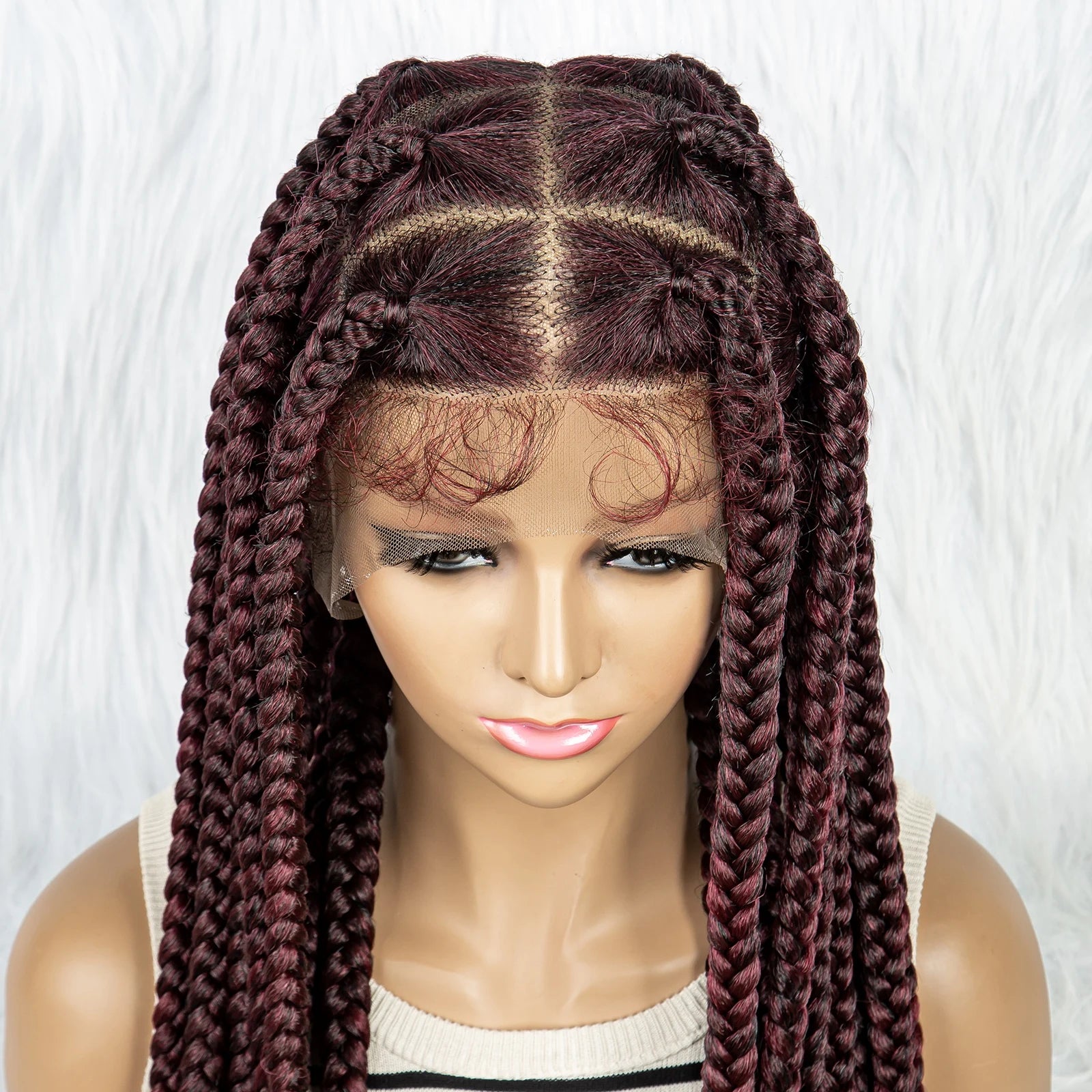 HD Full Lace Braided Wigs for Black Women Box Braids Synthetic Lace Front Wig Big Square Knotless Box Braids With Baby Hair