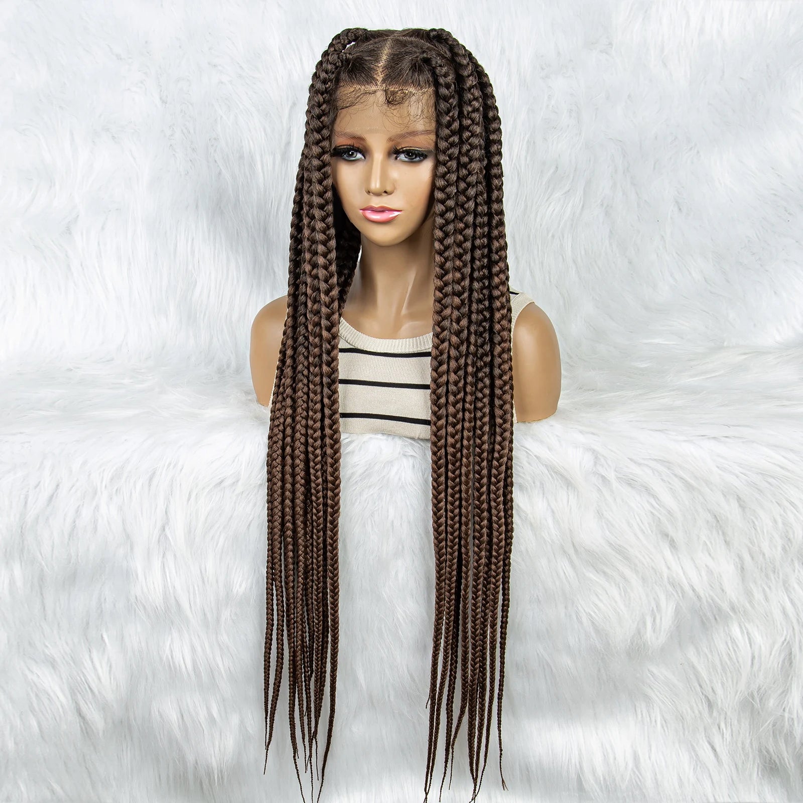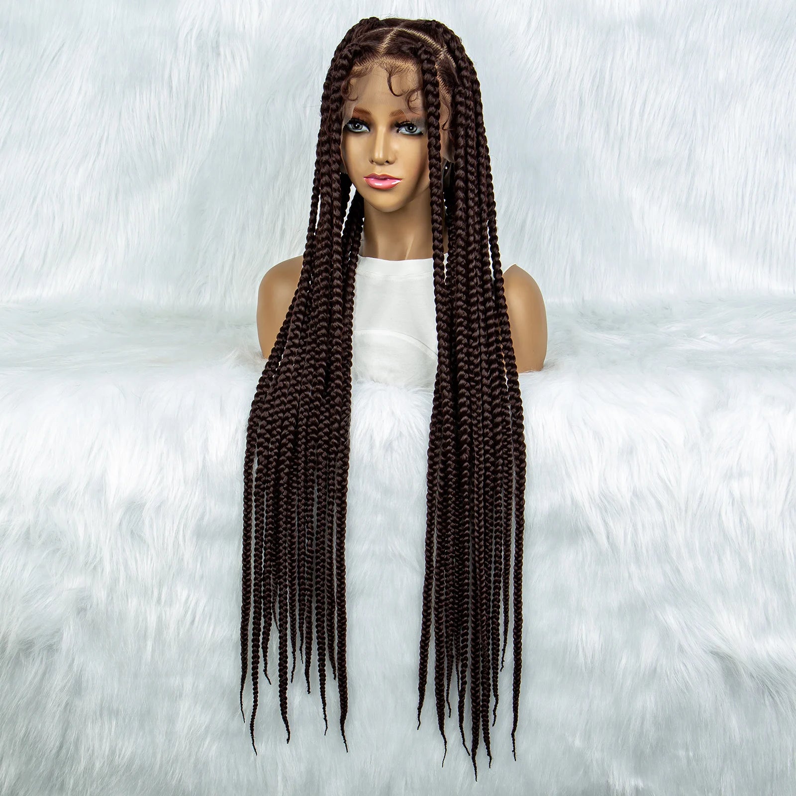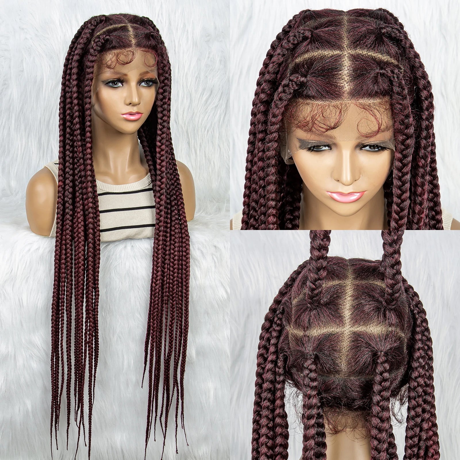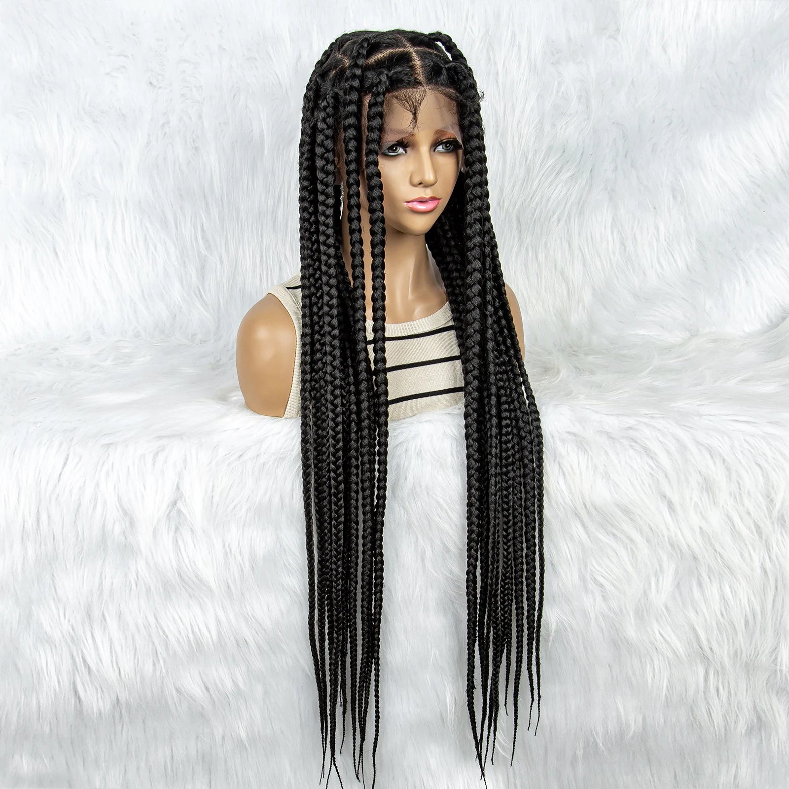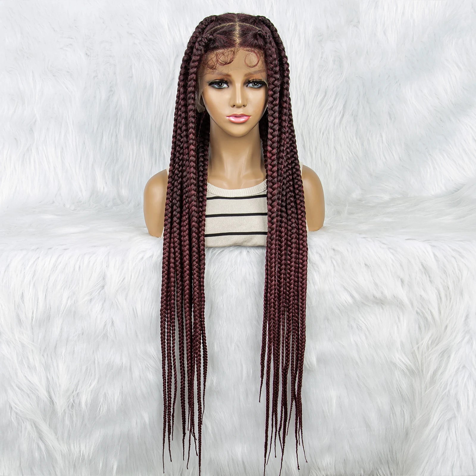 HD Full Lace Braided Wigs for Black Women Box Braids Synthetic Lace Front Wig Big Square Knotless Box Braids With Baby Hair