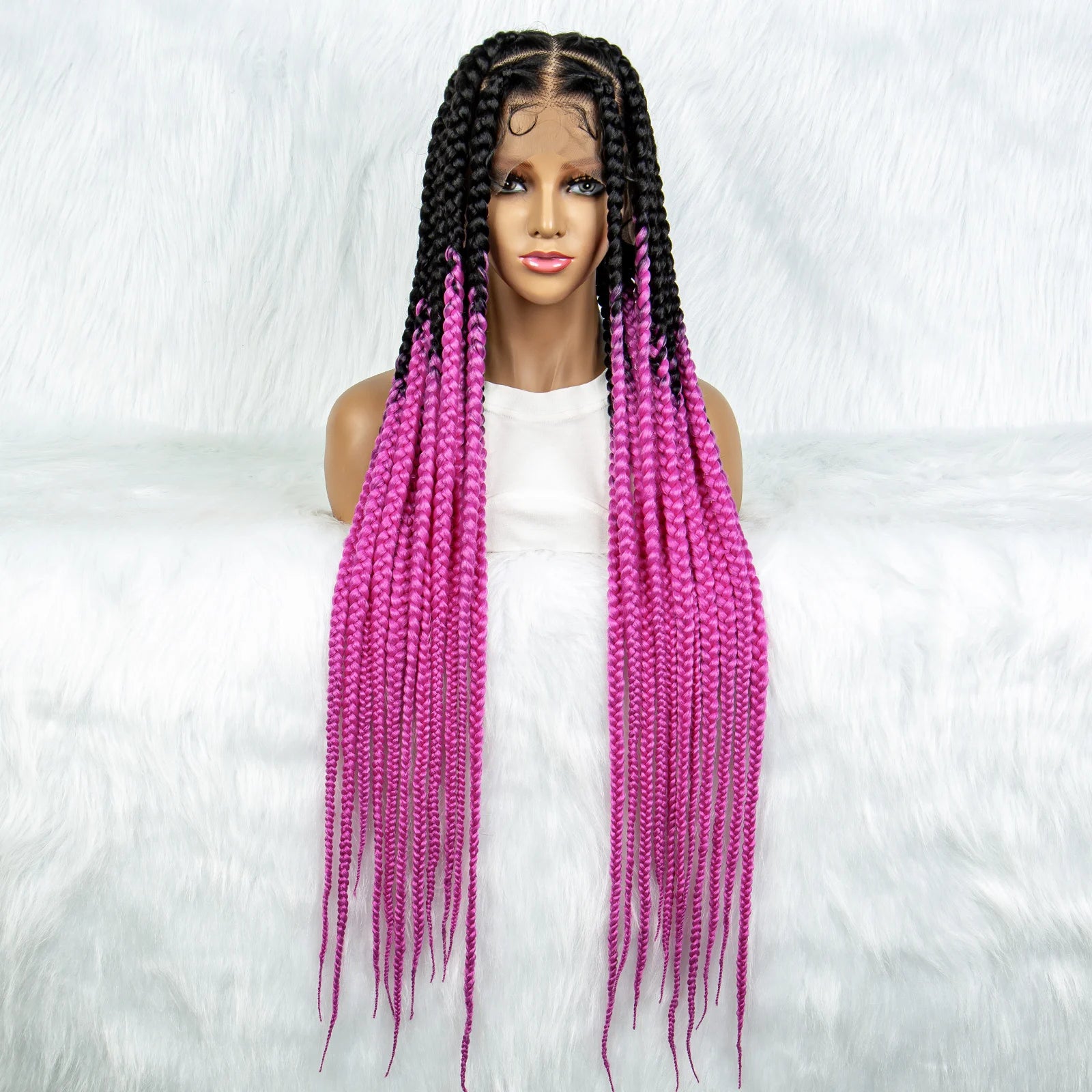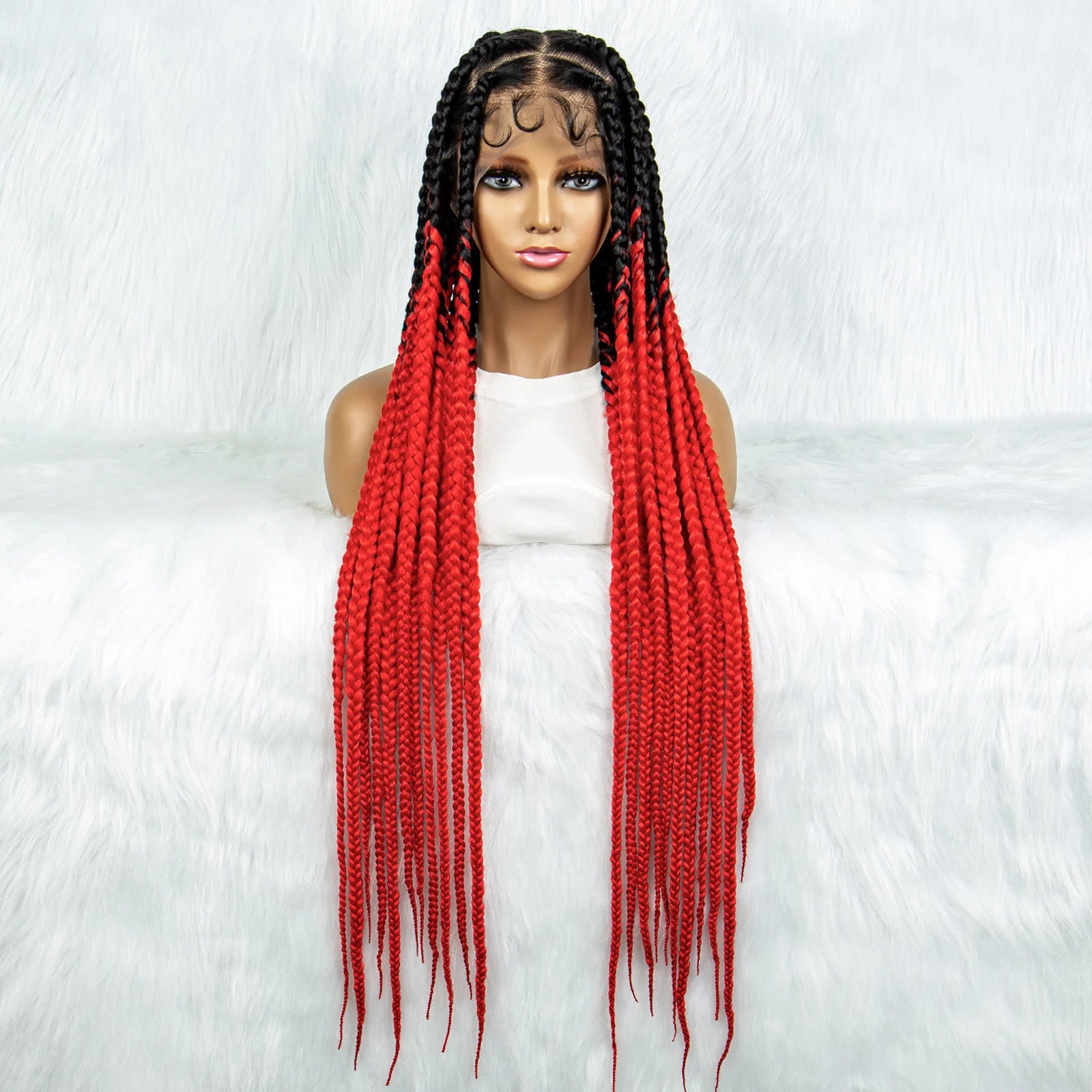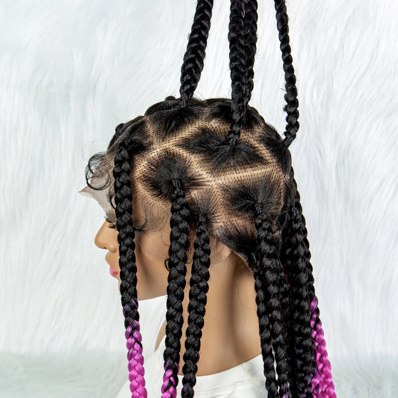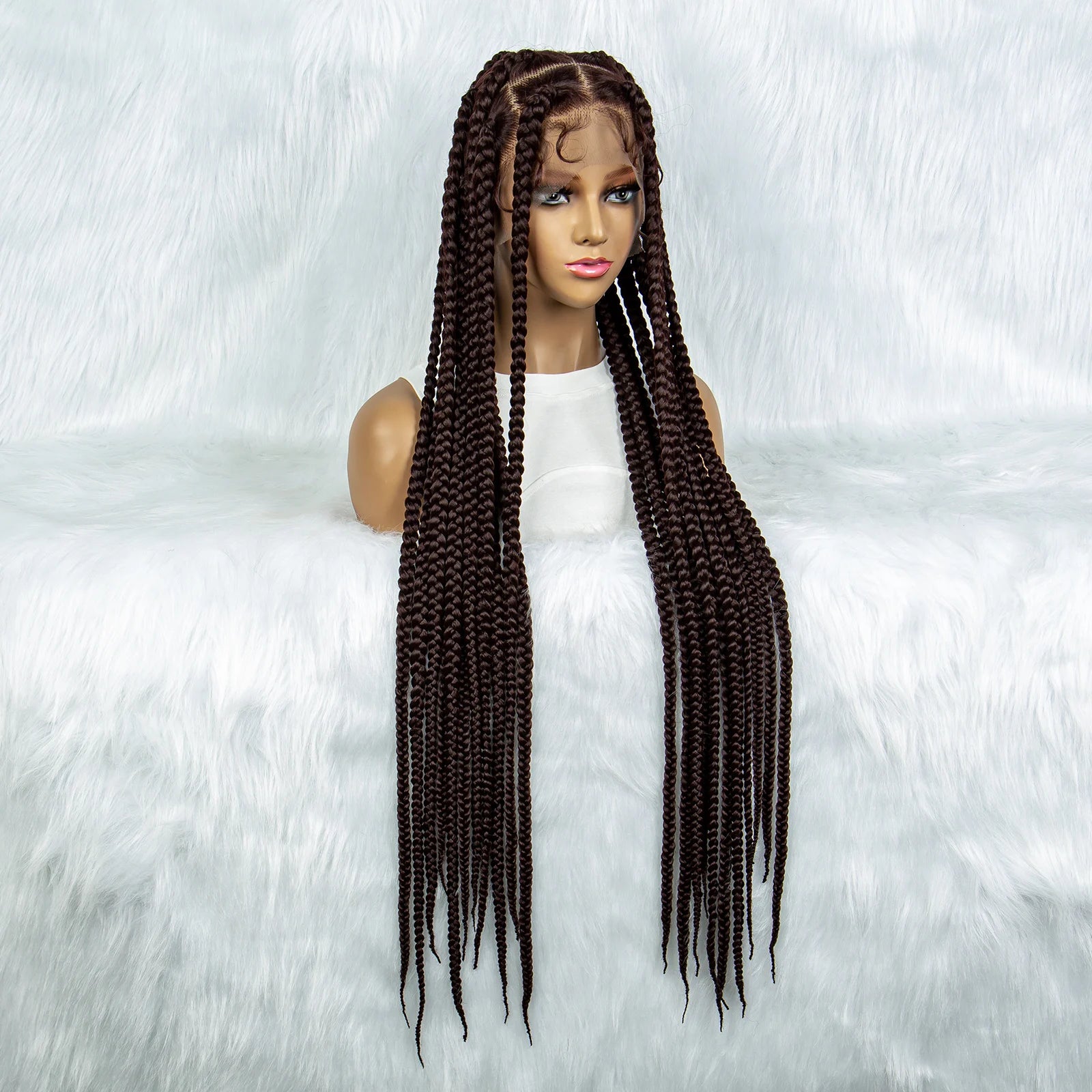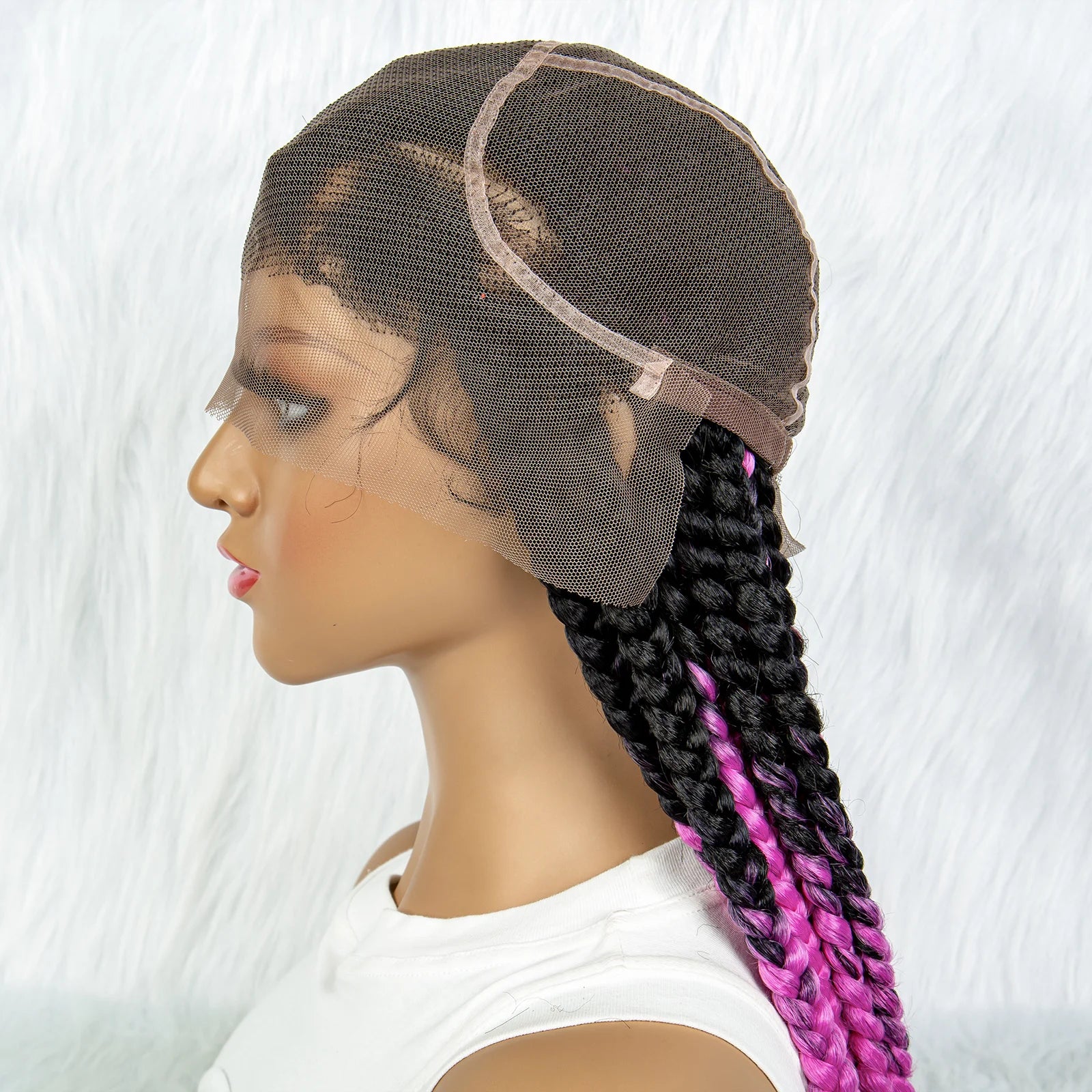 HD Full Lace Braided Wigs for Black Women Box Braids Synthetic Lace Front Wig Big Square Knotless Box Braids With Baby Hair